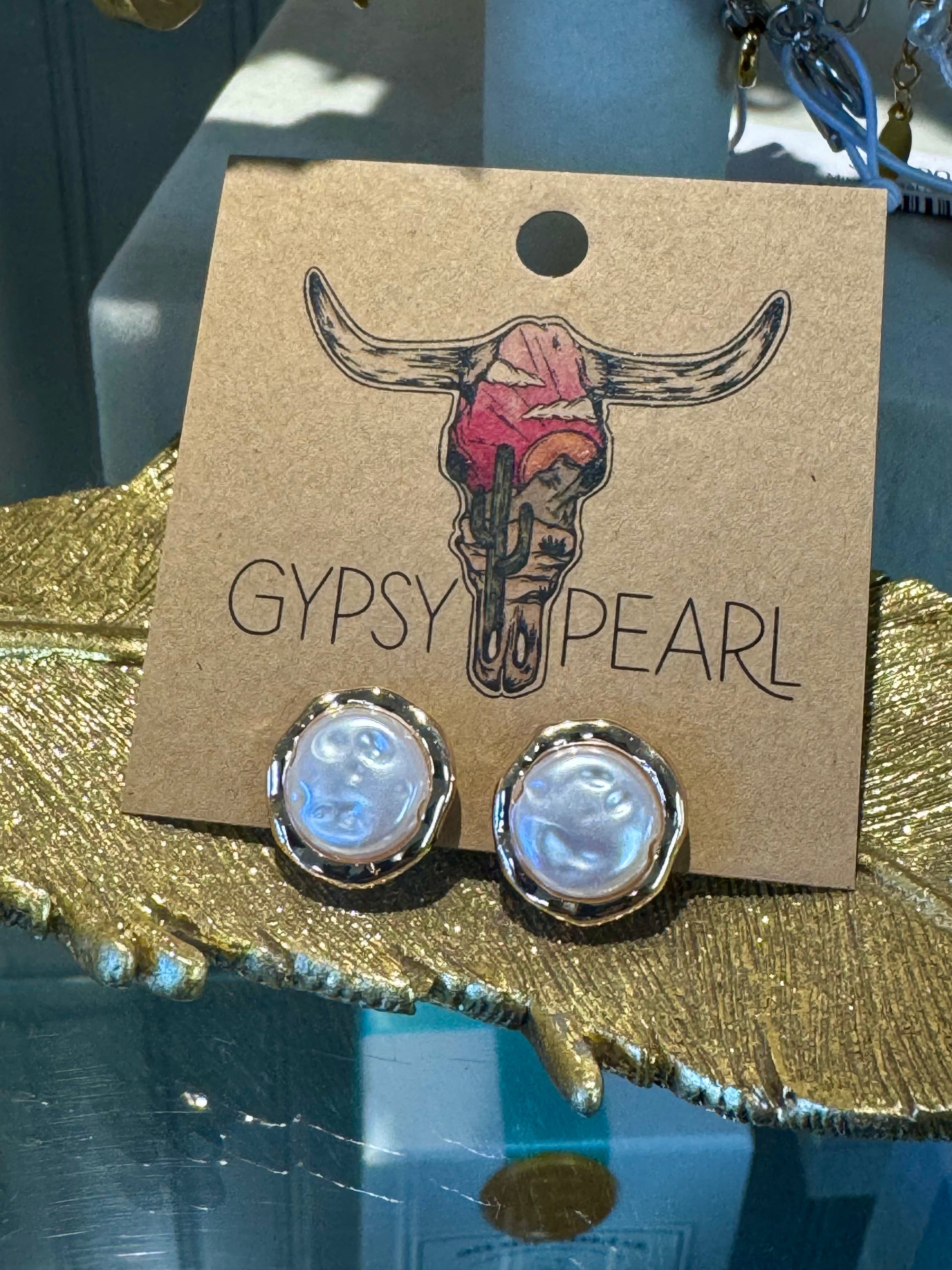 Gold and Pearl Stud Earrings