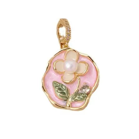 Pink Pearl Flower CZ Clasp Charm