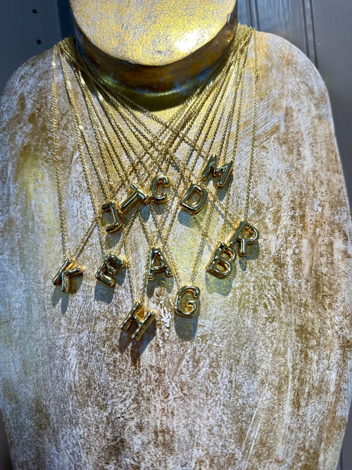 Gold Balloon Bubble Initial Necklace