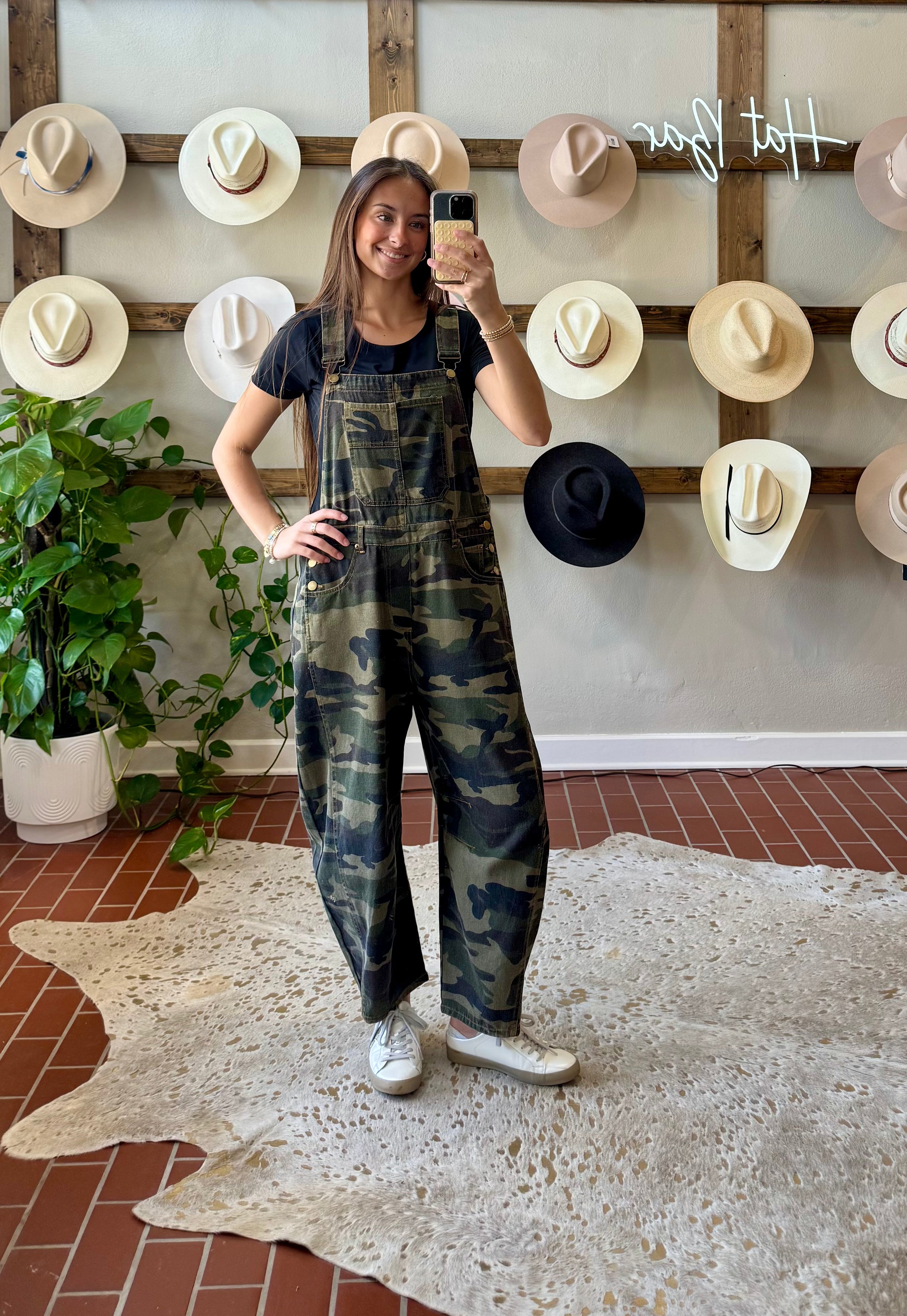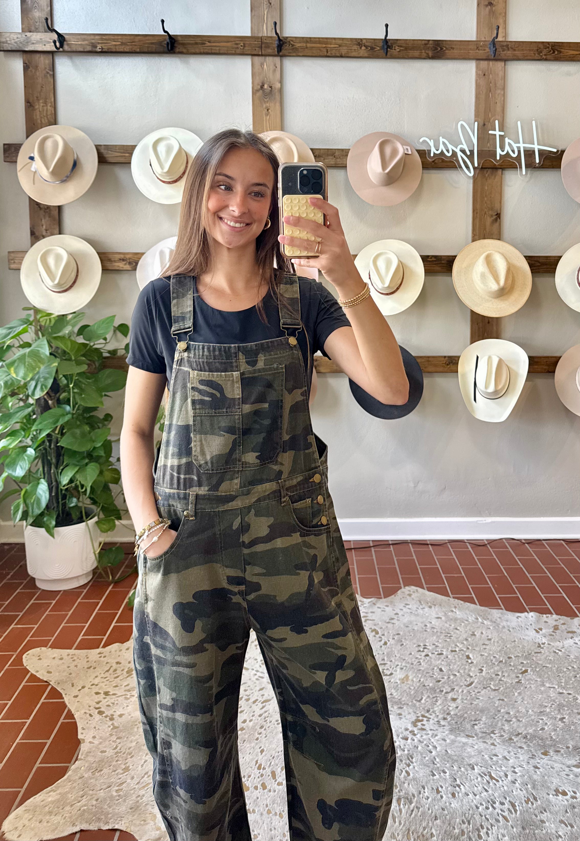 Embrace the season's hottest trend with these chic camo overalls. The barely-there silhouette pairs effortlessly with a basic tee for an on-trend look. Adjustable shoulder straps ensure a perfect fit, while stylish side button details add character to this must-have piece. Versatile and fashion-forward, these overalls are your go-to for casual comfort with serious style appeal.
