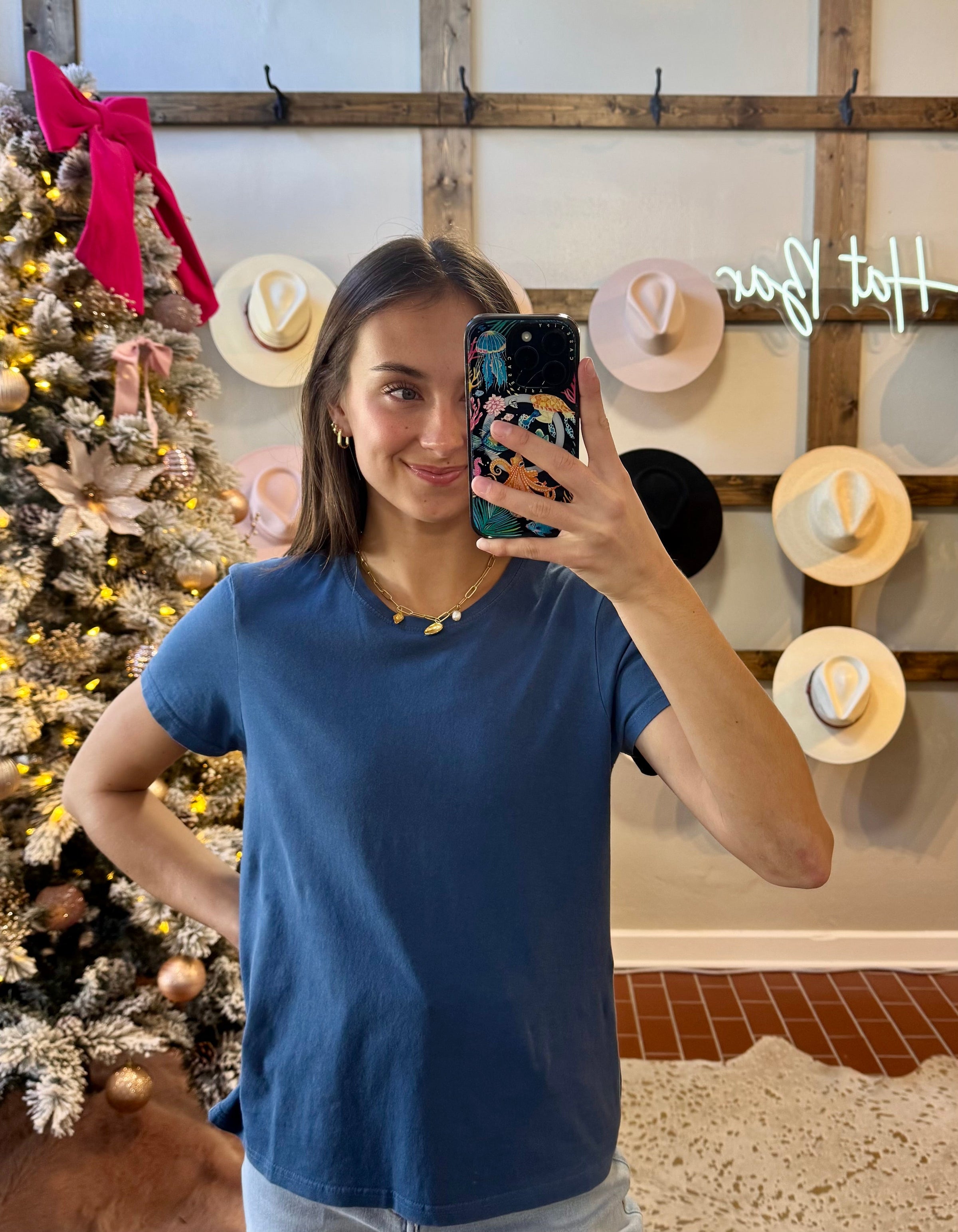 Embracing timeless elegance with the UNITY top in designer colors, featuring a crew neck and short sleeves in a classic fit, crafted from 100% cotton for unparalleled comfort and breathability.
