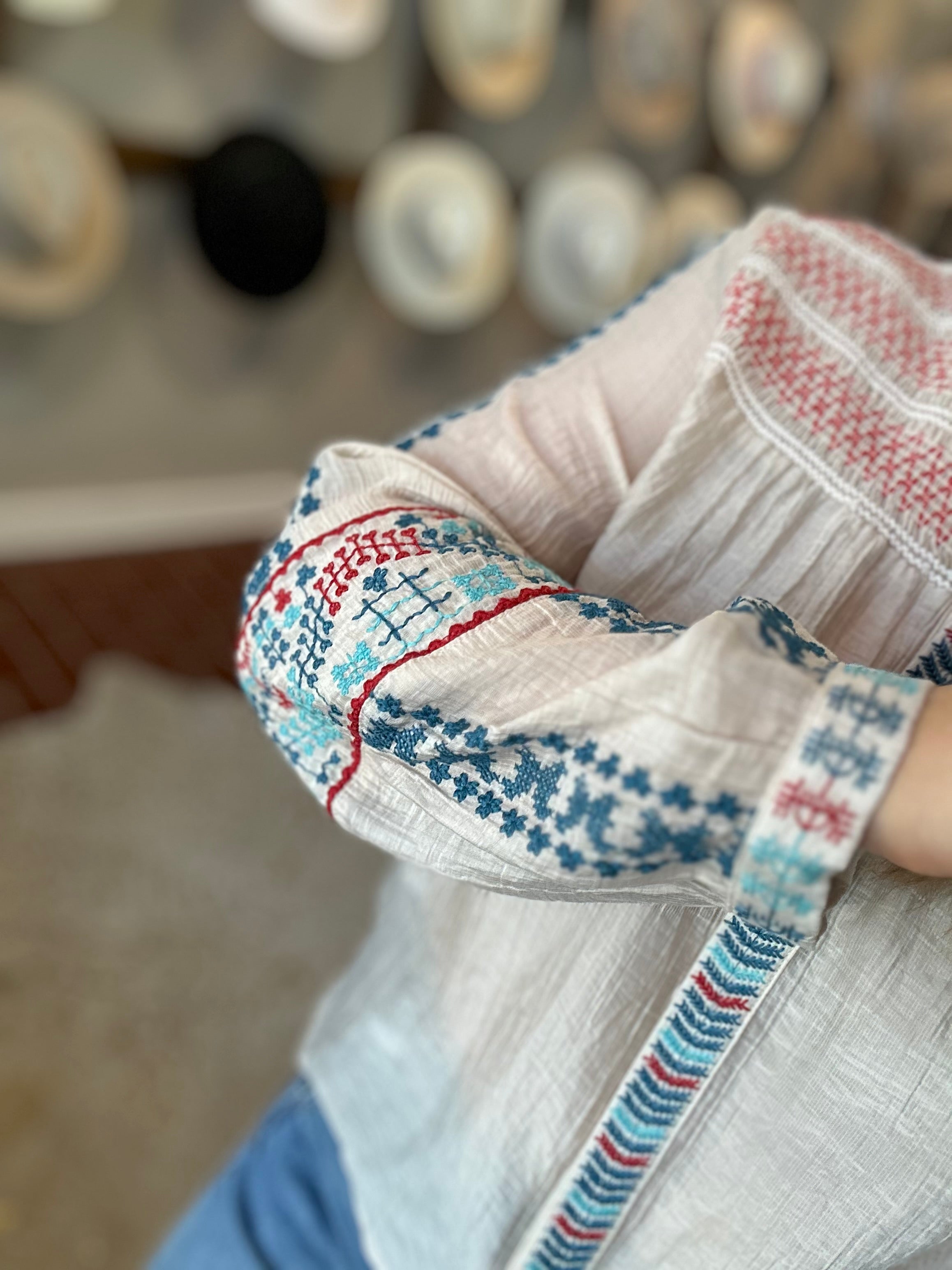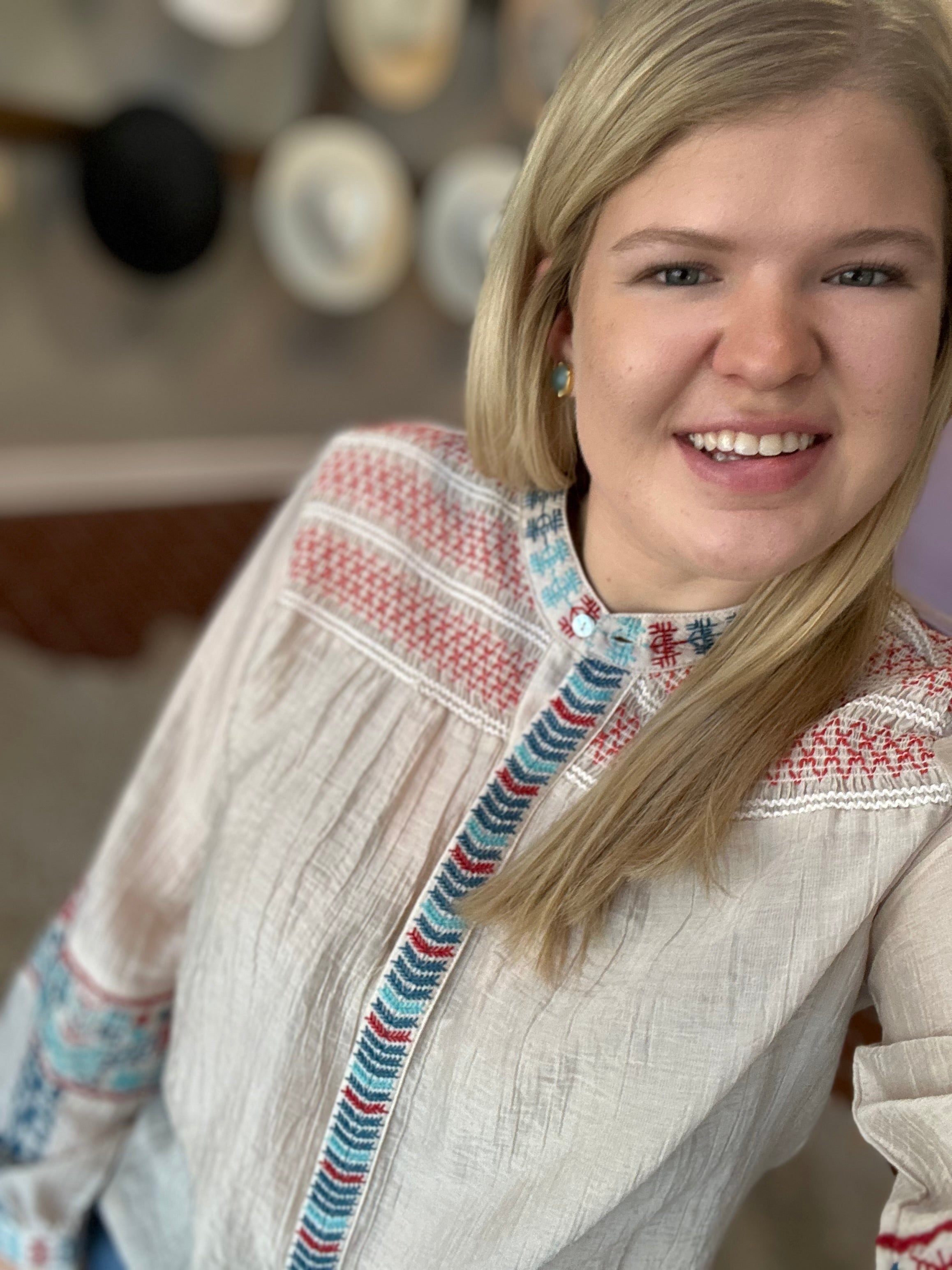 Makenna embroidered detail long sleeve shirt featuring a button-up front. Crafted in a charming seasonal hues, this versatile piece combines elegance with ease. Perfect for elevating any outfit, this relaxed fit offers both style and comfort for any occasion. A true must-have with intricate embroidery that adds a touch of sophistication.