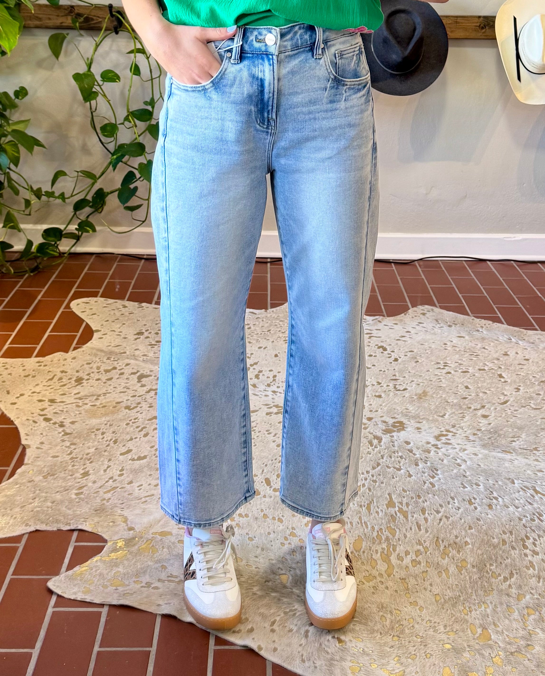 Risen Hailey Barrel Jeans deliver effortless spring and summer style with a flattering barrel silhouette and crisp light wash denim. The adorable adjustable snap waistband ensures a custom fit that moves with you, making these jeans as comfortable as they are versatile. Perfect for pairing with everything from crop tops to oversized tees, they're the go-to piece for warm-weather wardrobes.