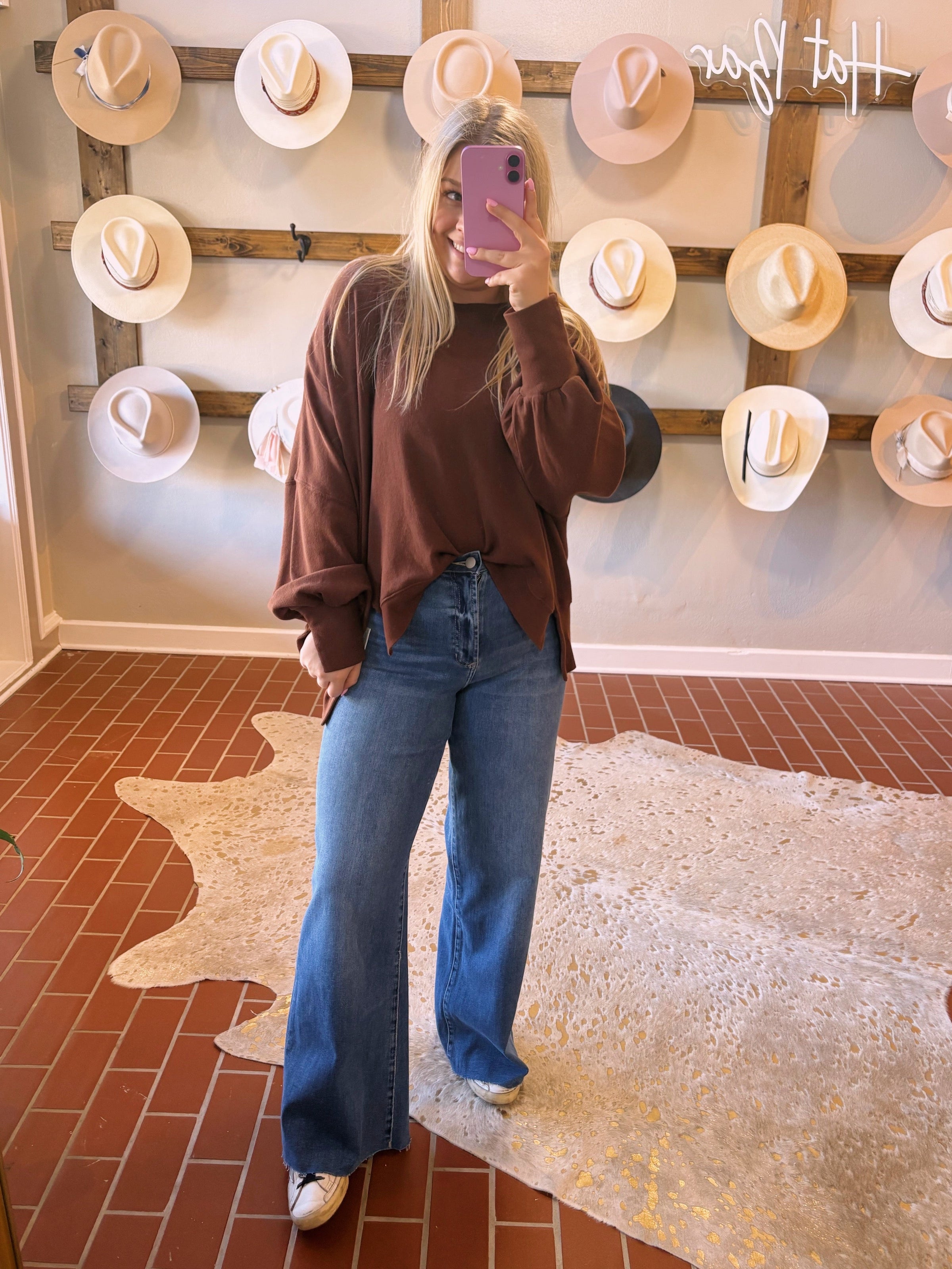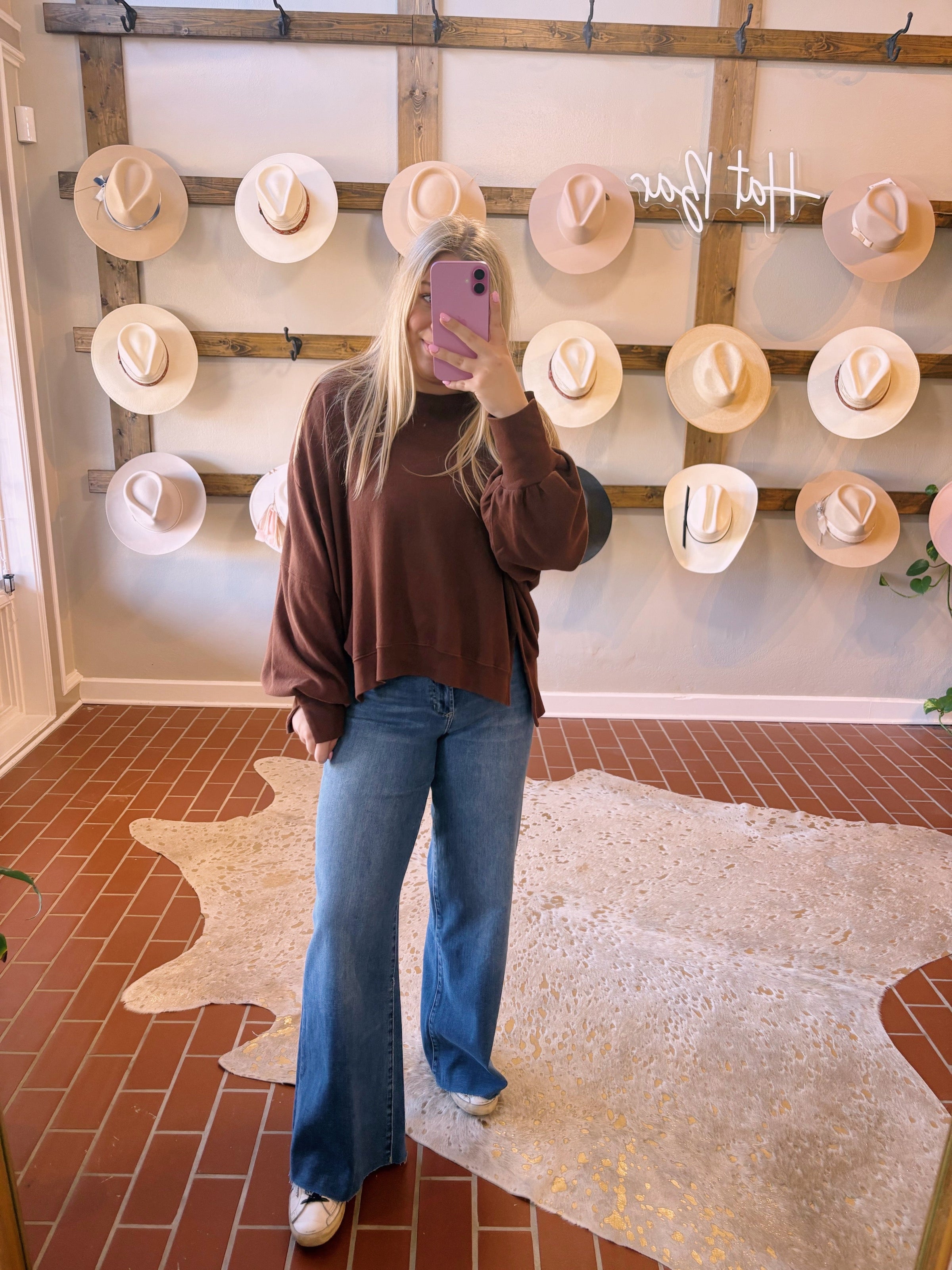 These wide-leg jeans feature a high-rise fit with a structured waist and a relaxed silhouette through the leg. The Fog Sky wash offers a soft, lived-in blue that feels easy and wearable while still looking intentional. Classic five-pocket styling and subtle fading add everyday versatility, while the straight, full-length leg creates a flattering, balanced shape. Designed to pair effortlessly with fitted tops or flowy layers, these jeans work well for both casual days and dressed-up looks.