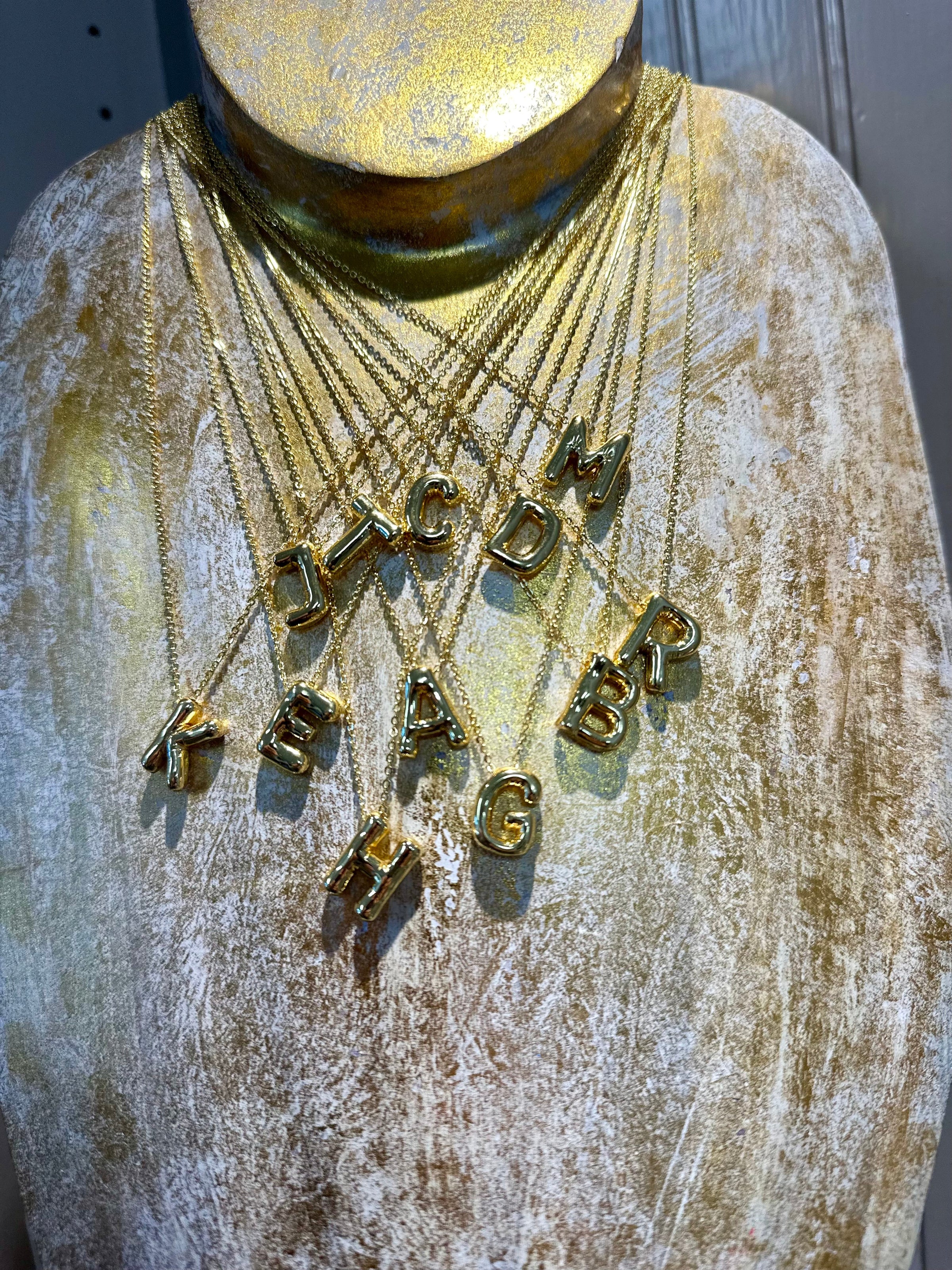 This Gold Ballon Initial Necklace is a timeless classic. Each necklace is designed to stand out with its delicate balloon style lettering. It makes an ideal gift for any special occasion. 18" Chain length with a 2" extender Original Initial size: 0.95" - satelight chain Medium size: 0.57" - shimmer chain
