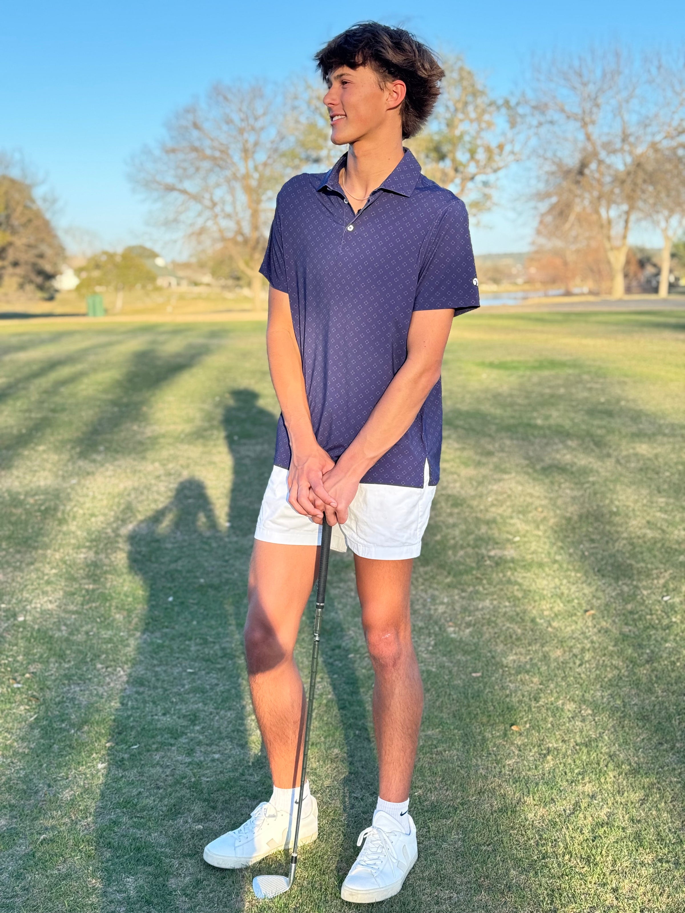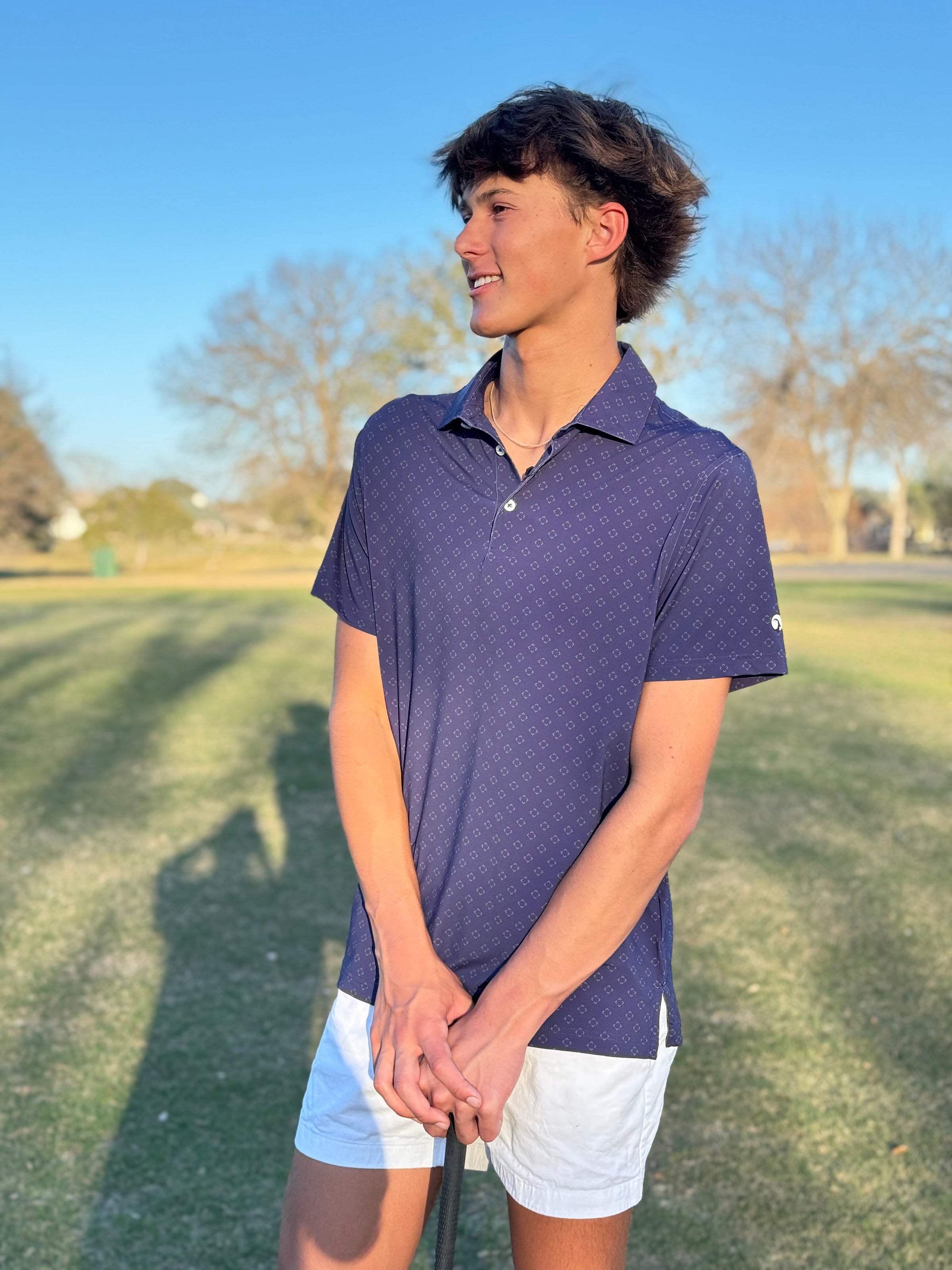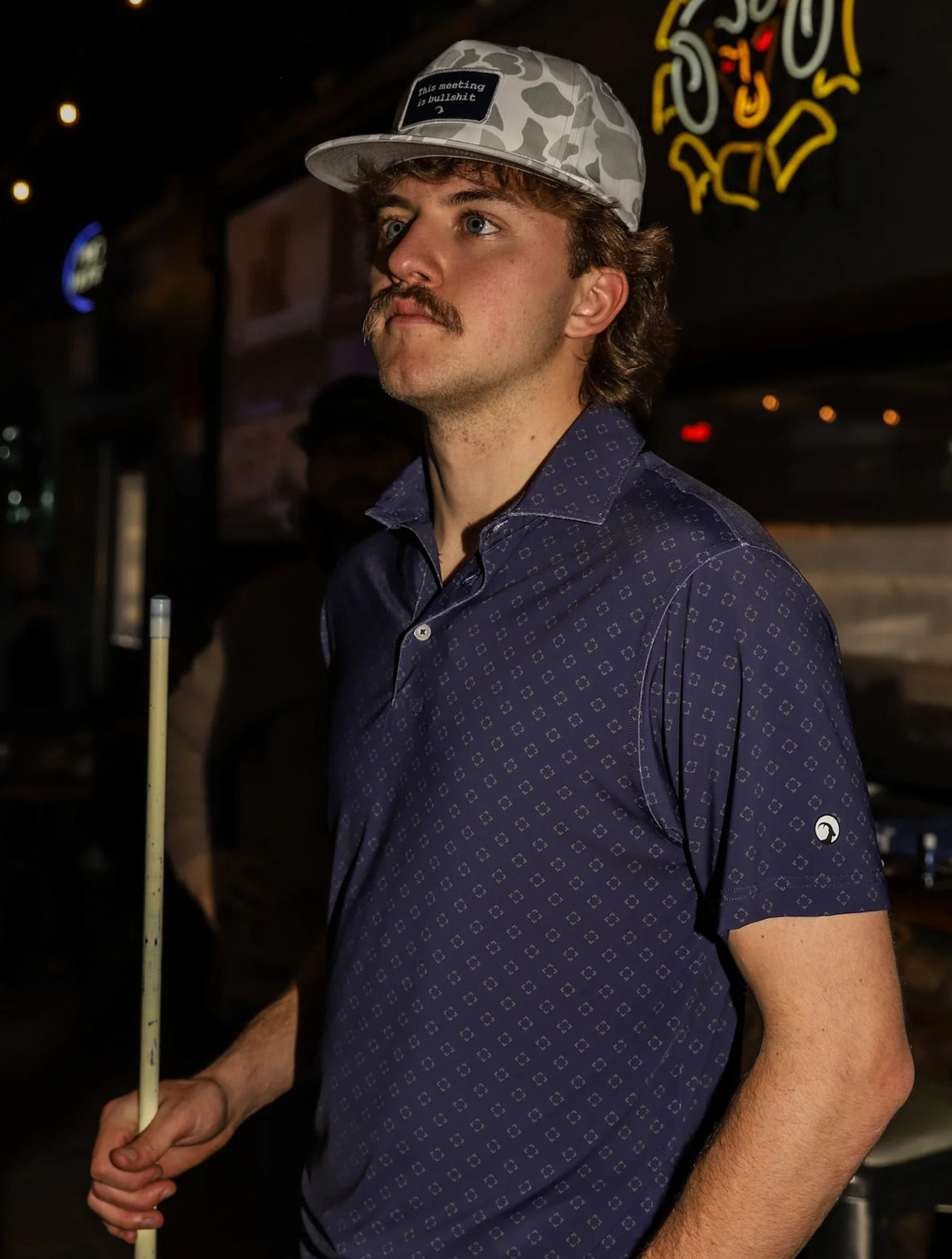 Clean, sharp, and built for movement, The Quad Polo in Navy Microprint is your all-day, go-anywhere shirt. Designed with a subtle geometric print on a deep navy base, this polo brings a touch of polish without ever trying too hard—ideal for post-hunt dinners, early meetings, or casual Saturdays in town.