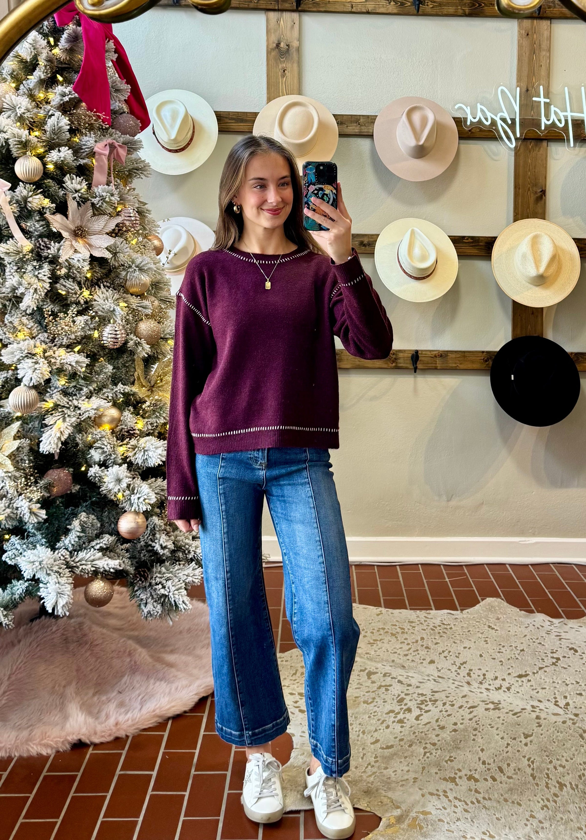 Be effortlessly chic with our Another Love Bay Sweater. This stunning sweater features delicate cream stitching throughout the hemline, adding a touch of elegance to any outfit. Perfect for holiday parties or cozy nights in, this sweater is a must-have for your wardrobe. Stay stylish and cozy with the Another Love Bay Sweater.