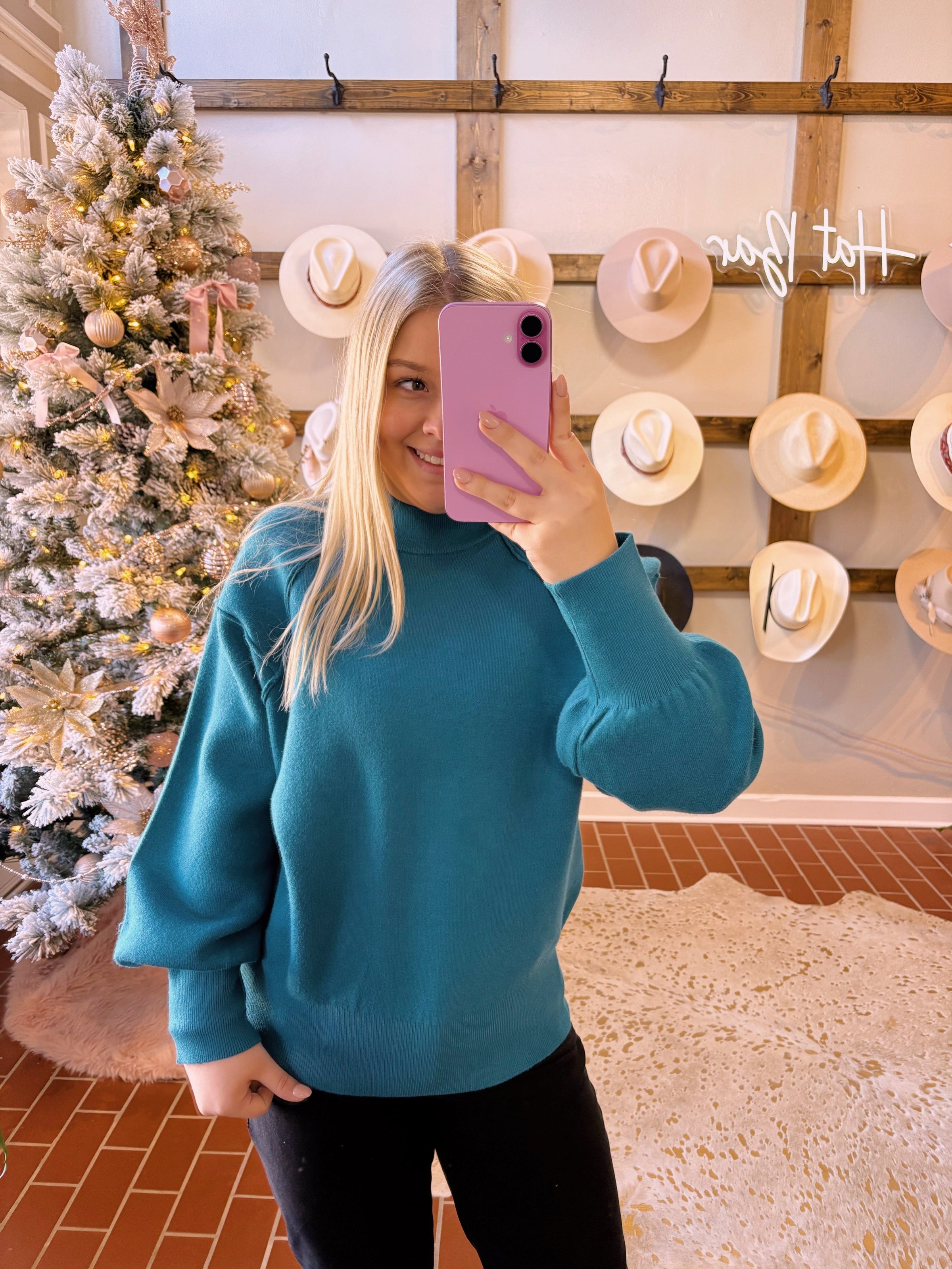 Elevate your everyday wardrobe with this striking viscose mock neck sweater, designed with exposed seams that add contemporary edge and visual interest. Crafted from a premium blend of 50% viscose, 28% nylon, and 22% polyester, this piece delivers exceptional softness and durability. The vibrant teal hue makes a bold statement while the relaxed fit—measuring 24.5" in body length and 40" across the chest—ensures comfortable all-day wear. Perfect for layering or wearing solo, this sweater combines modern design details with quality construction that lasts.