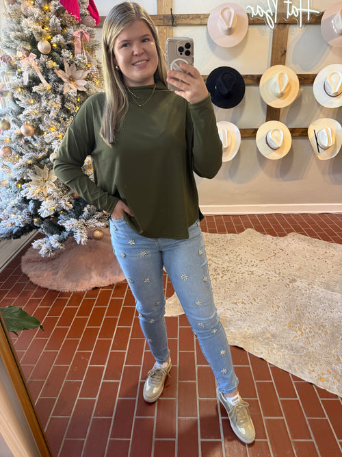 Olive Moc Neck Top