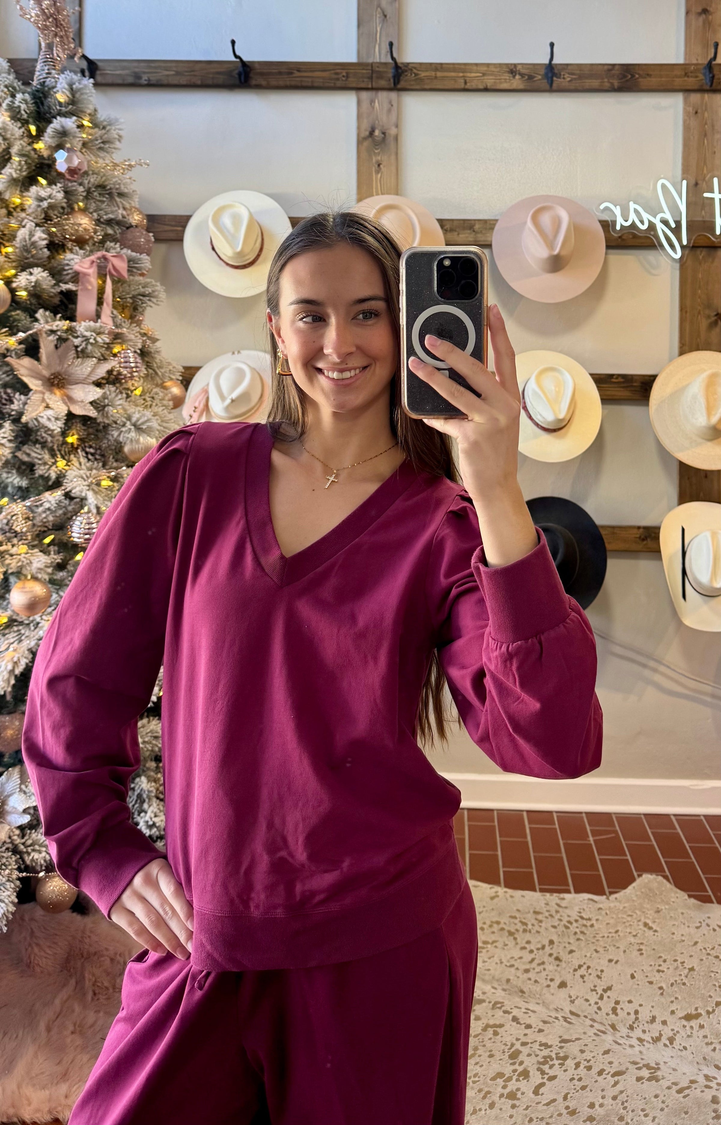 Timeless Sammi v-neck sweatshirt, featuring pleated long sleeve perfectly crafted for unparalleled style. Imbue a chic, elevated touch, ideal for both casual outings and more polished affairs. Its versatile design effortlessly pairs with tailored trousers or your favorite denim for a contemporary yet classic look. Feeling fabulous comes as naturally as looking stunning.