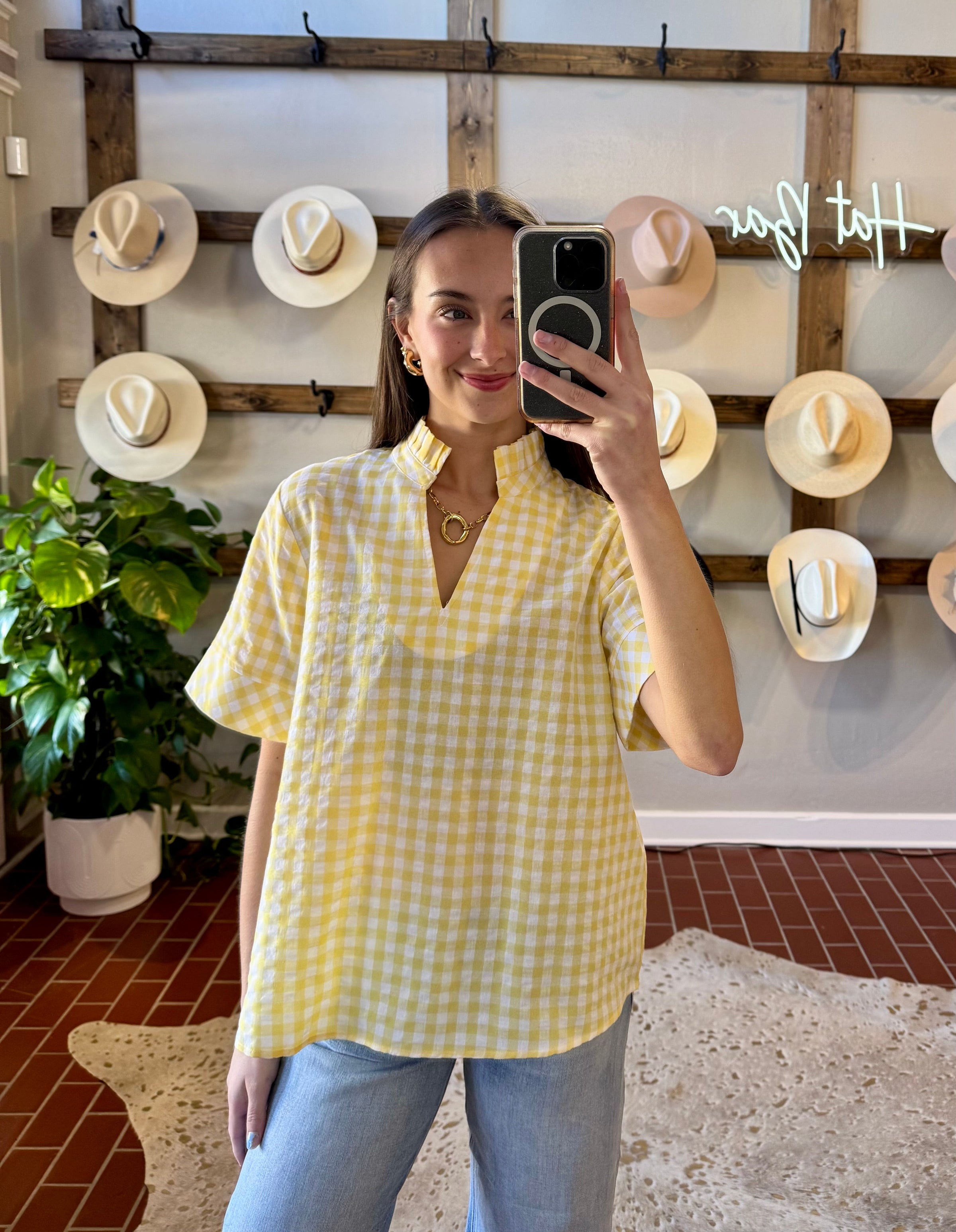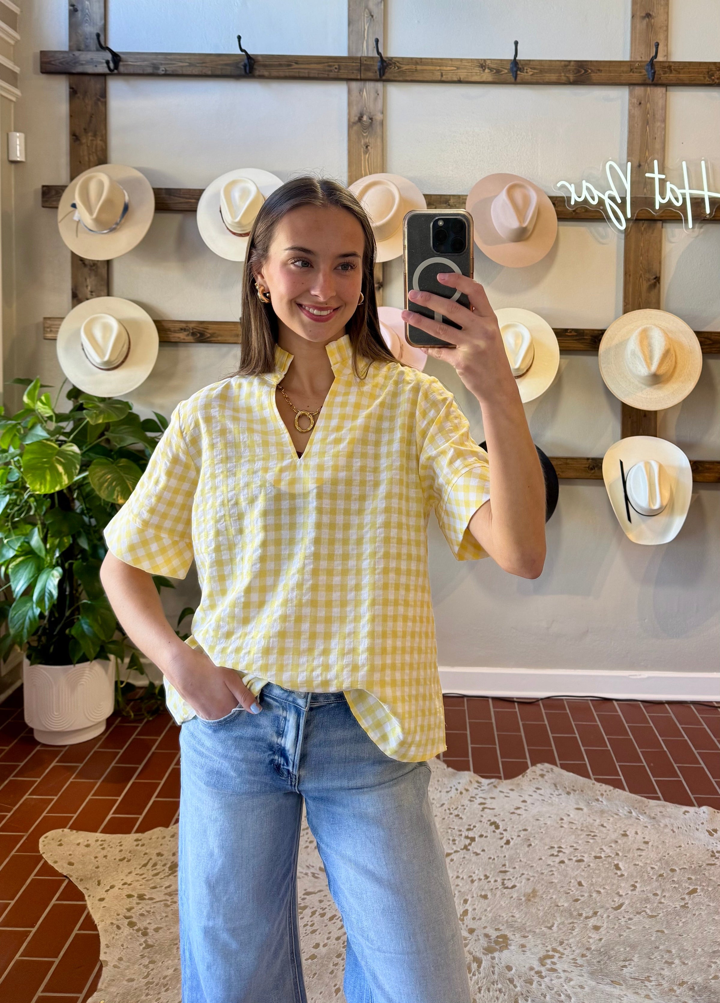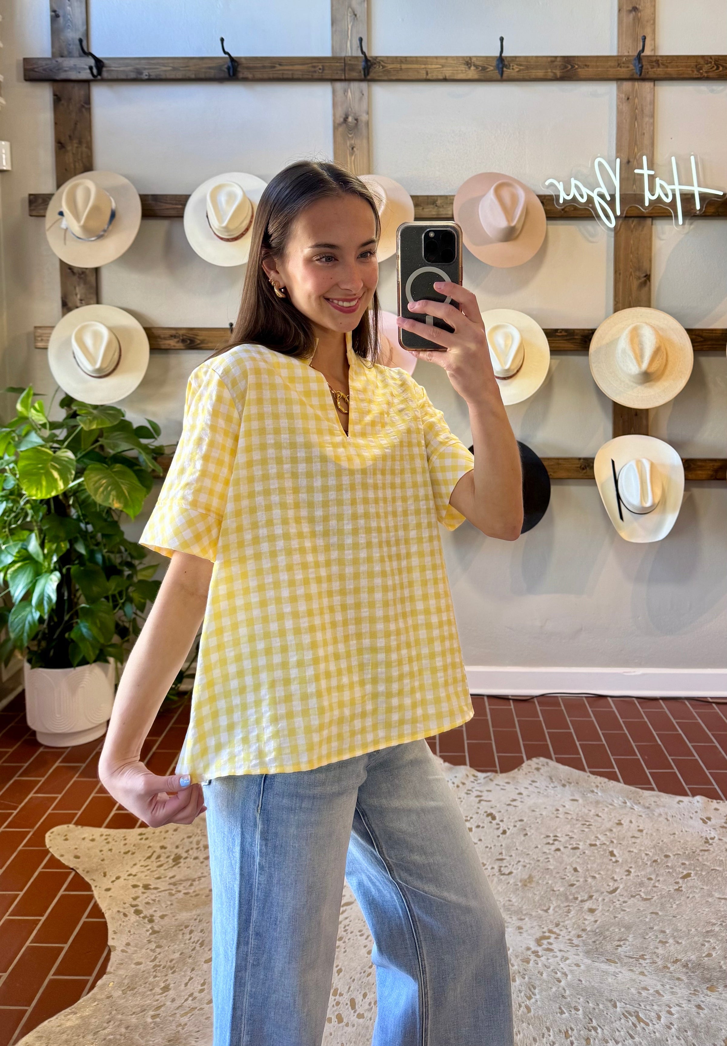 Lemon Gingham Top
