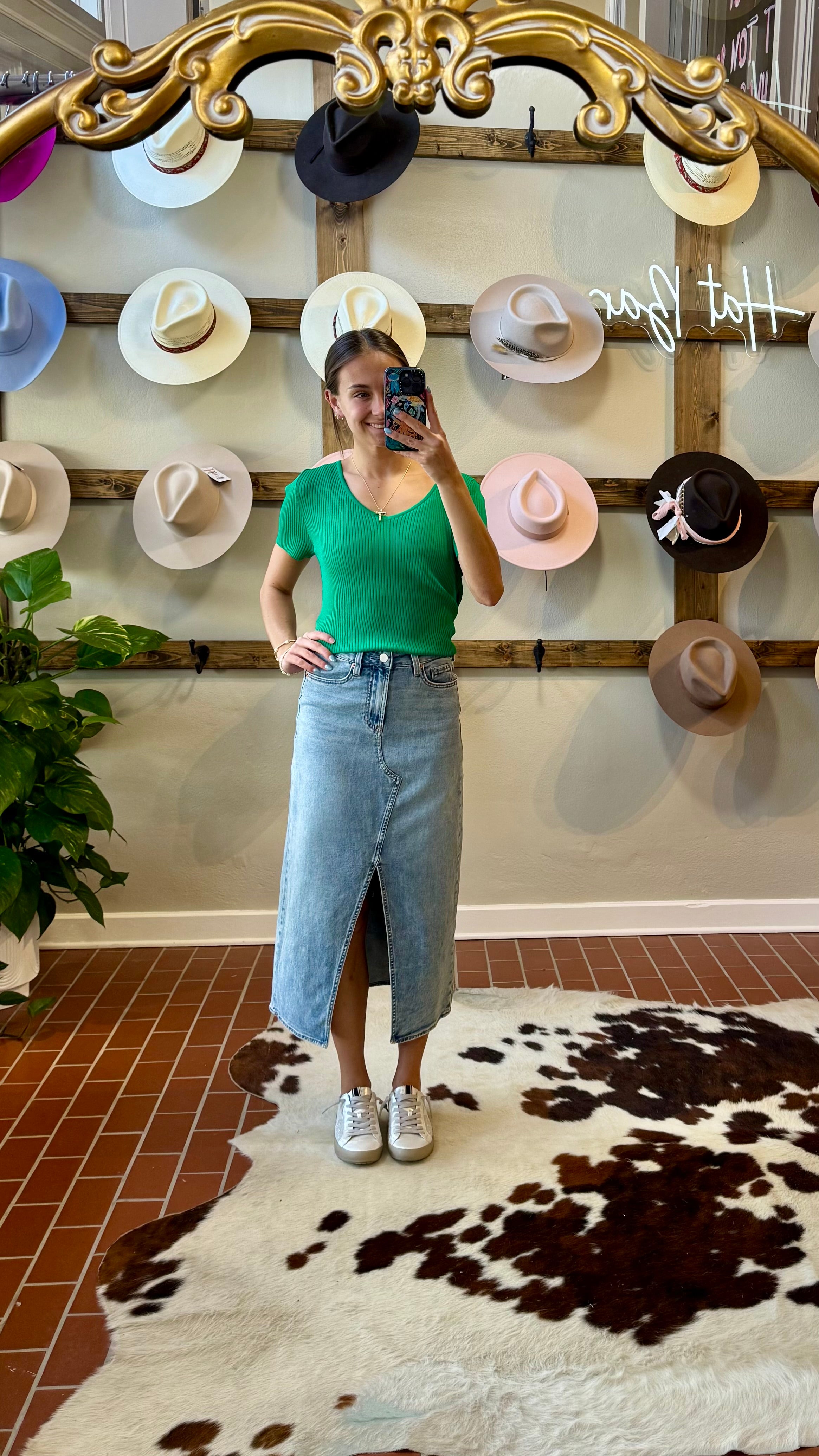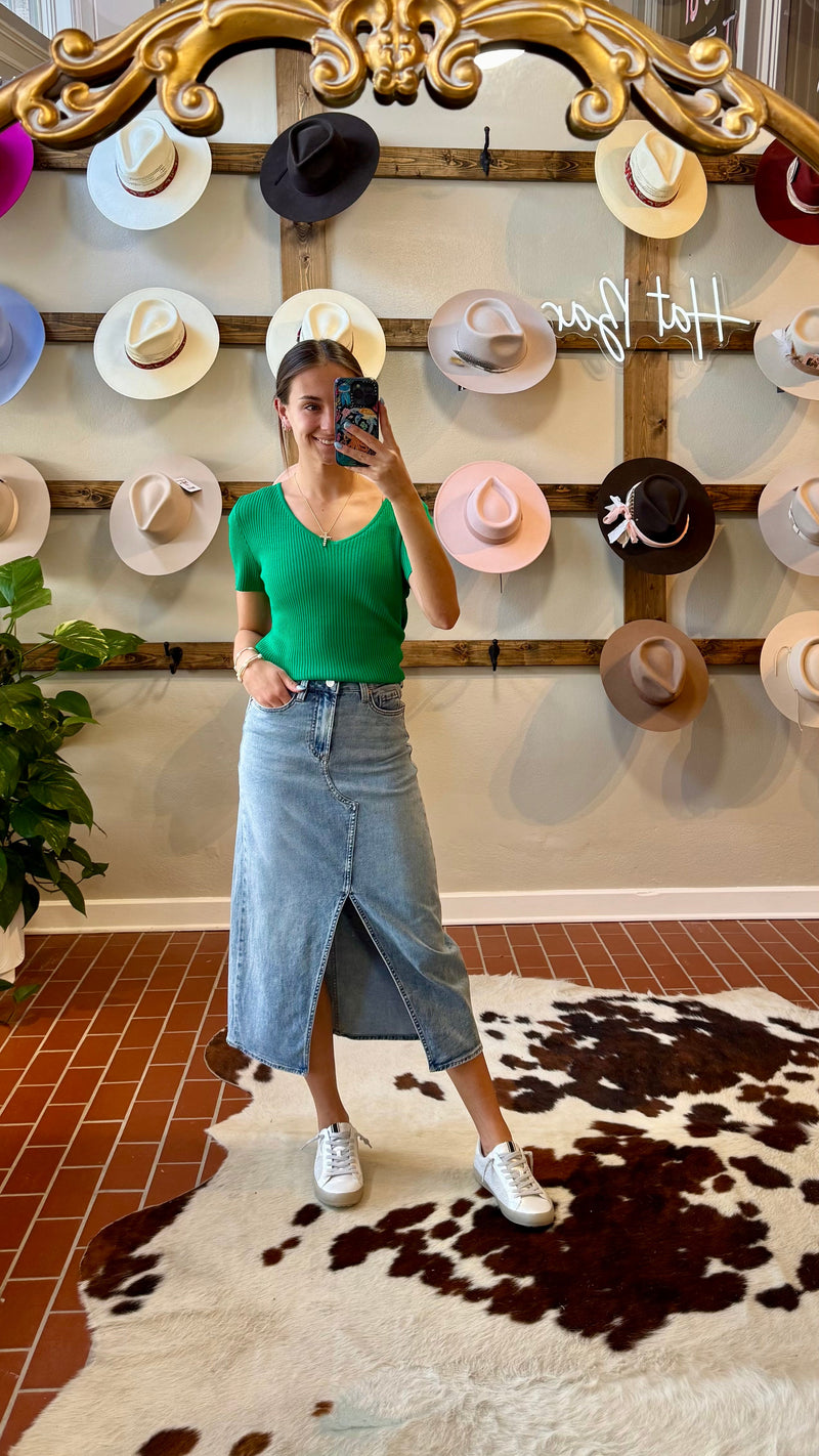 Get ready to fall in love with Another Love's Rhiannon Top. Made from a light weight ribbed sweater fabric, this top features a flattering v neckline, raw hemlines, and a figure flattering fit. Perfect for a dressed up game day look with white denim, or a casual yet chic vibe with your go-to denim.