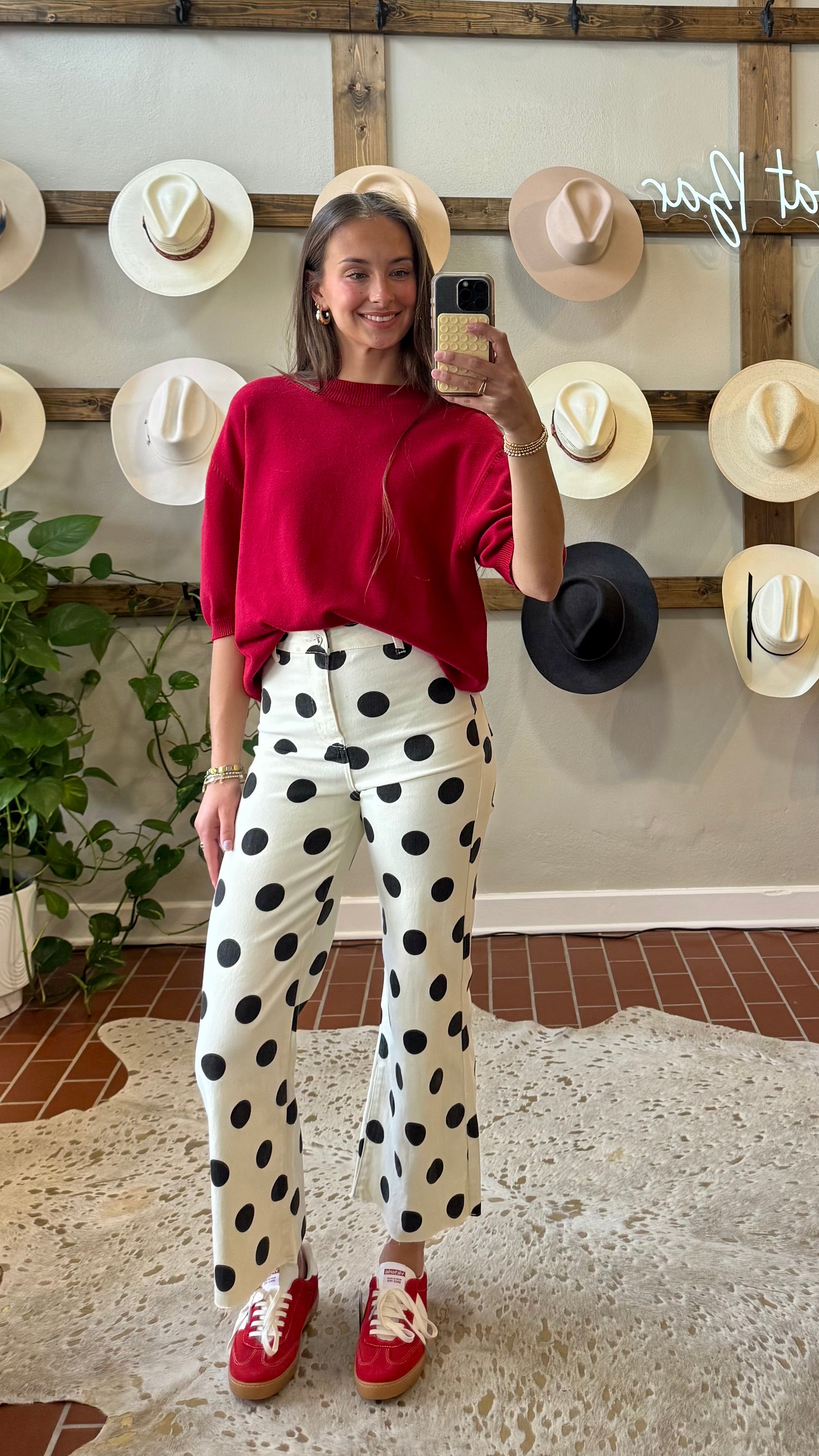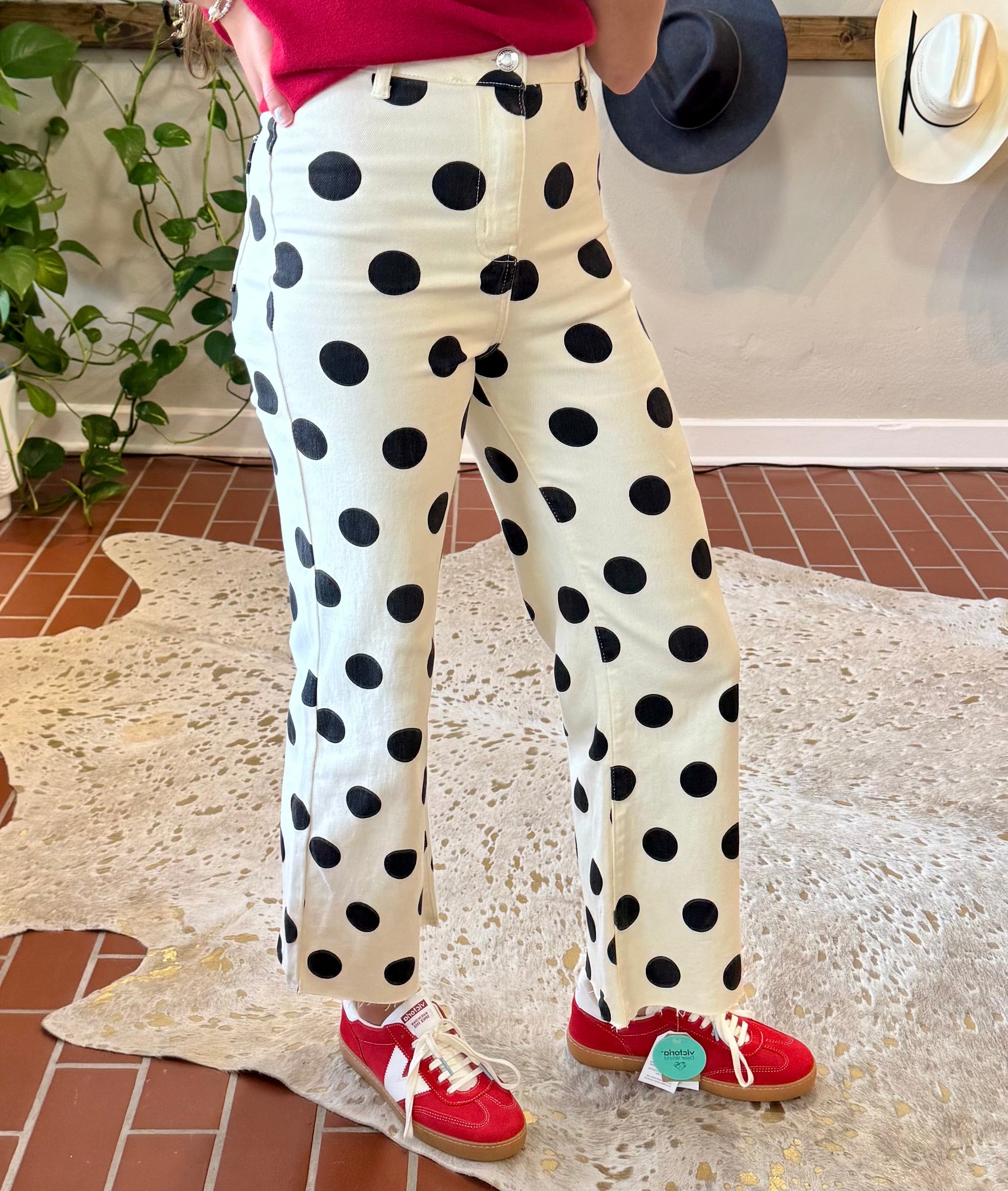 BIG POLKA DOT STRETCHY IVORY DENIM PANTS