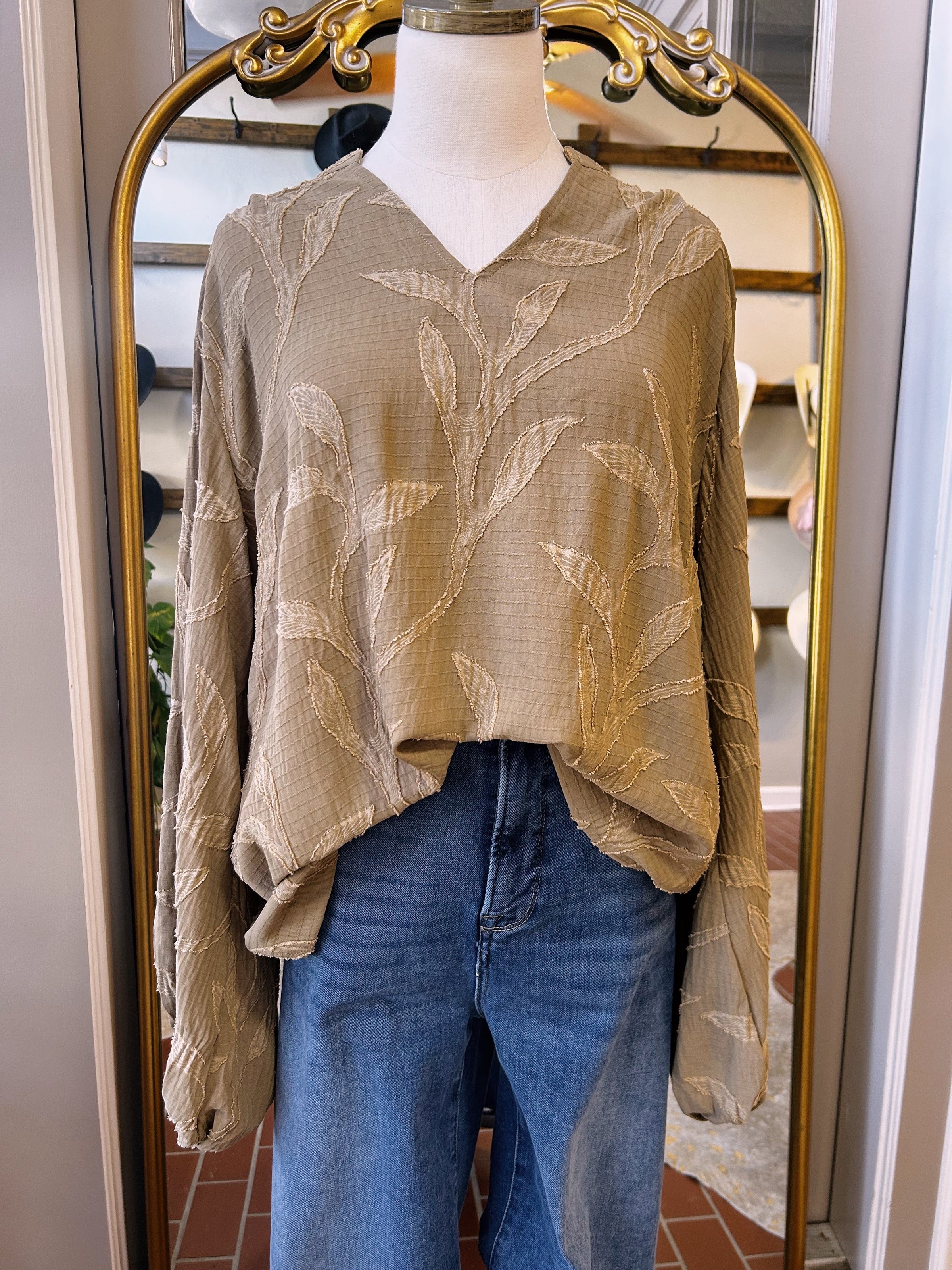 The Curvy Jordan Top is the ideal piece for a seamless shift into fall style. Its flattering v-neckline and unique raised vine design add a touch of elegance, while the elastic wrist bands provide both comfort and a subtle, stylish detail. Designed with a flowy fit, this top ensures all-day ease and confidence, making it perfect for layering or wearing on its own. Embrace comfort without sacrificing fashion this season.