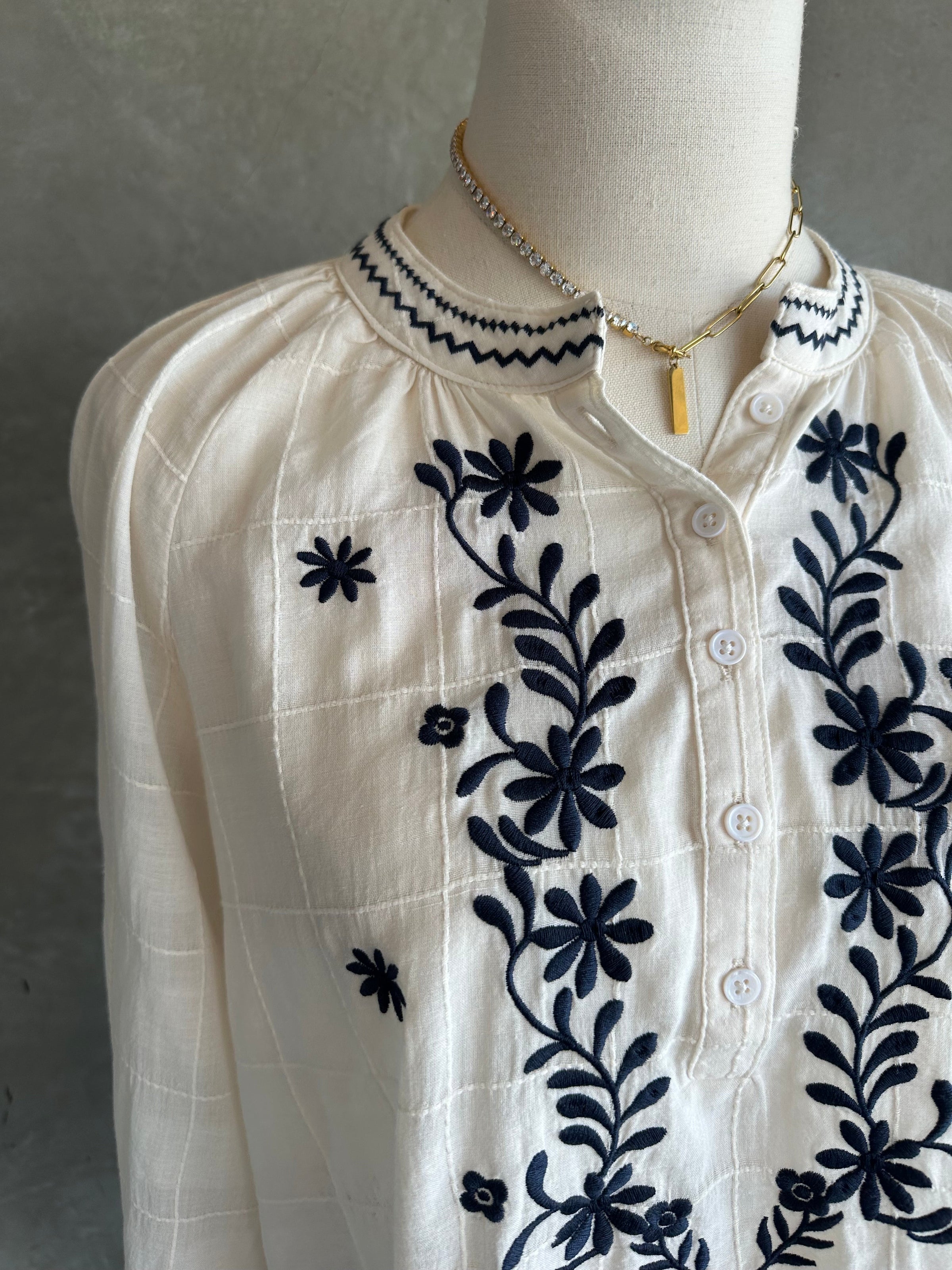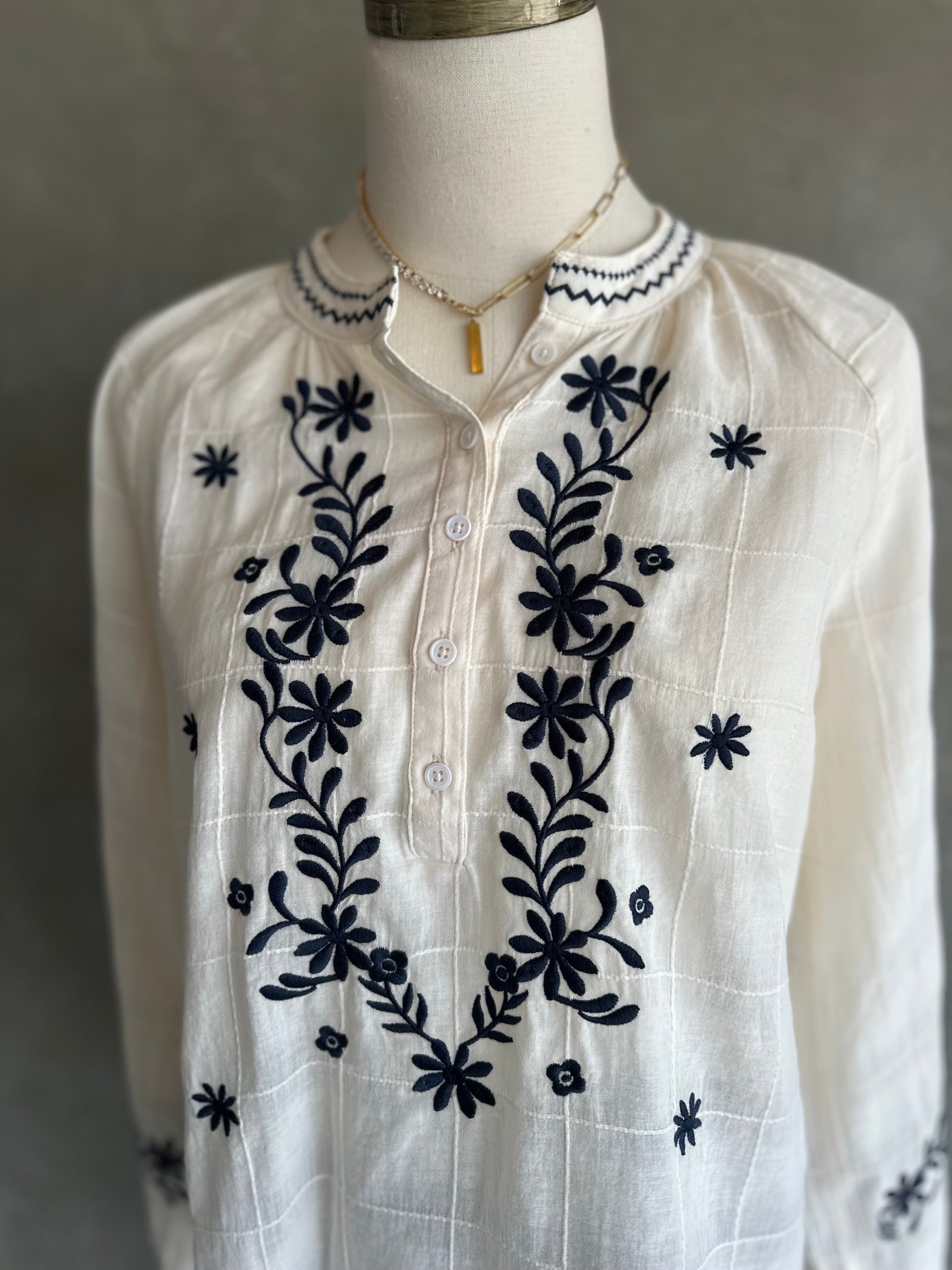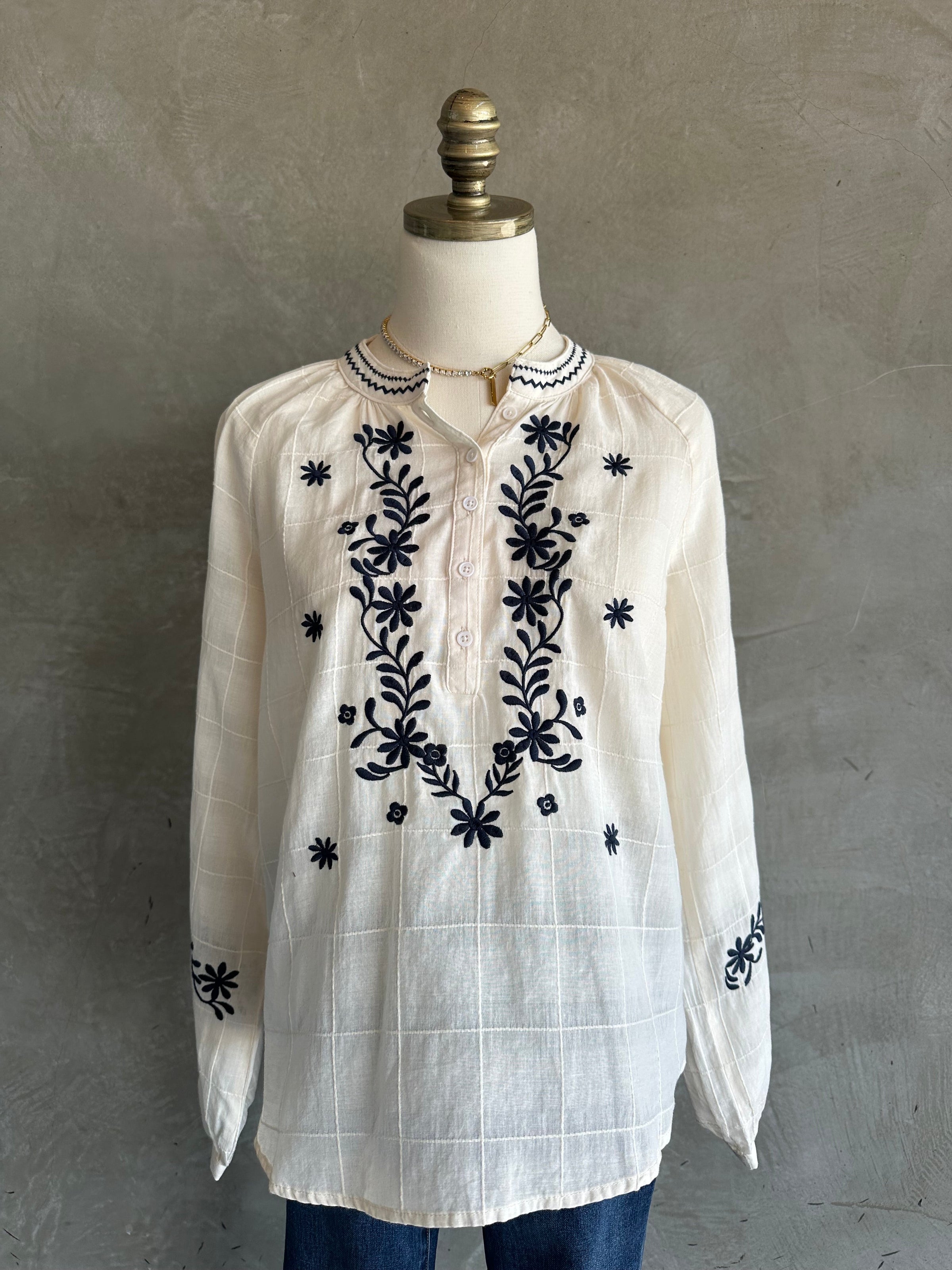 Embrace the elegant Ella with long sleeve top, featuring long sleeves and intricate embroidery detail, adding a touch of sophistication to any outfit.