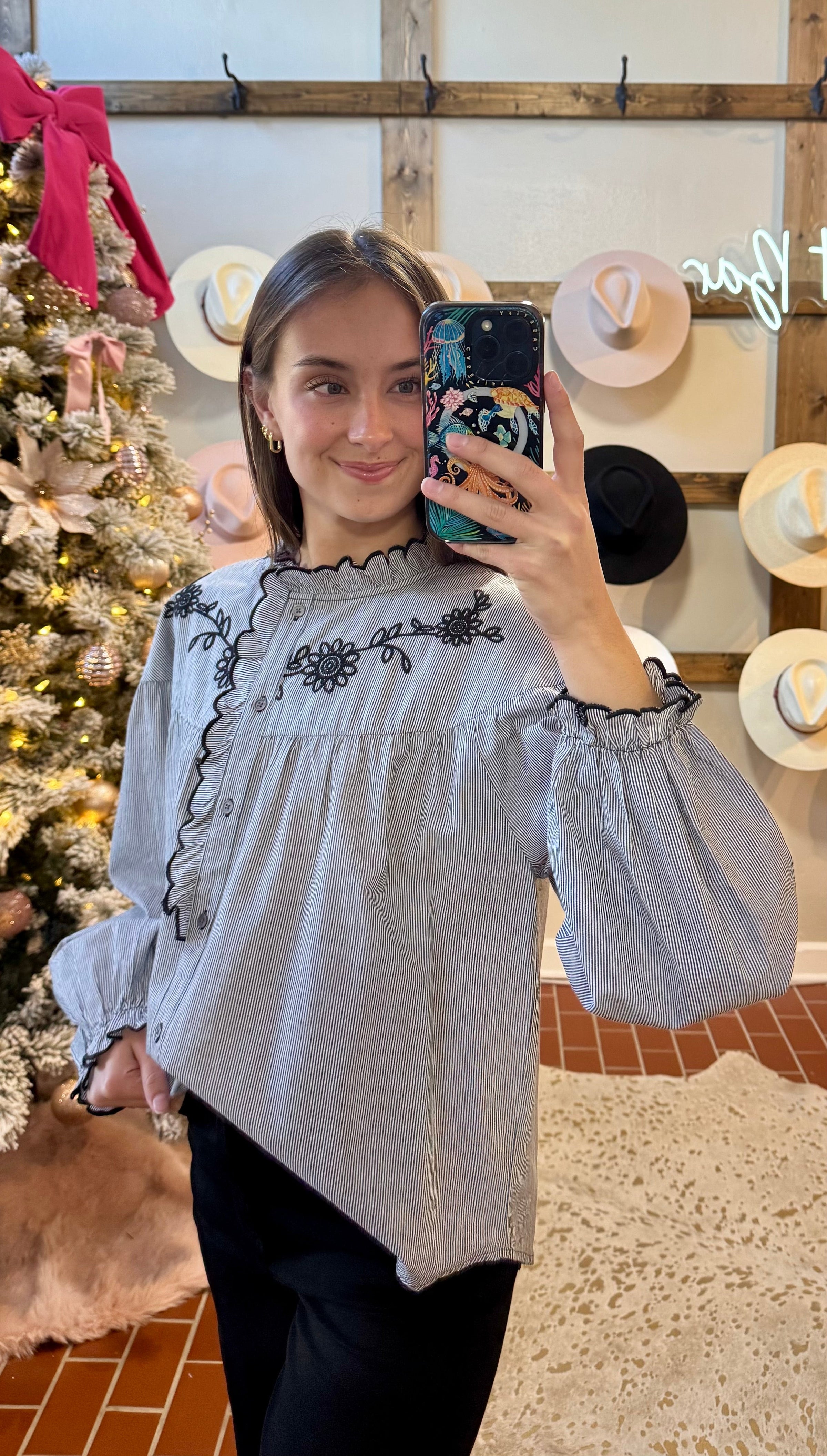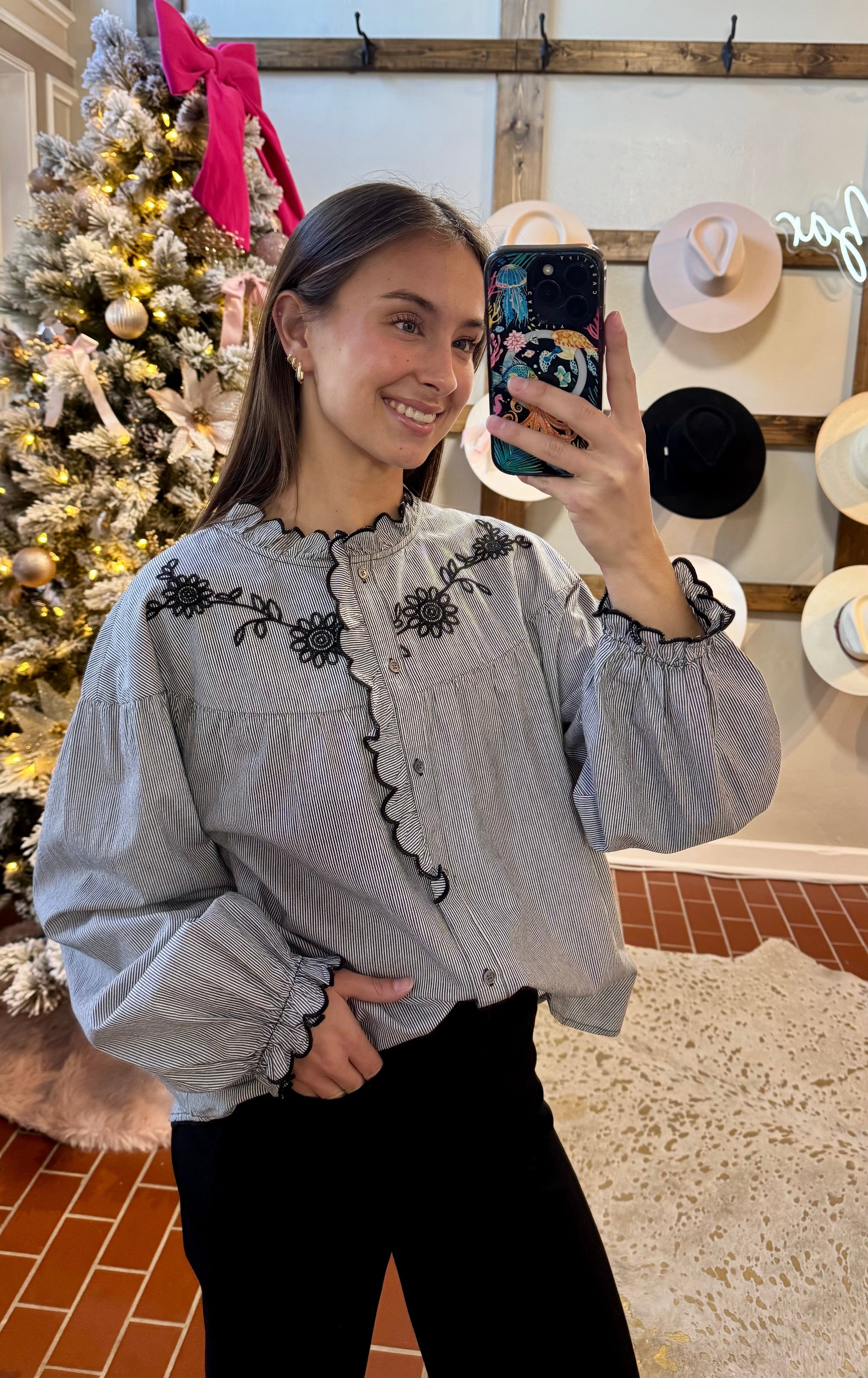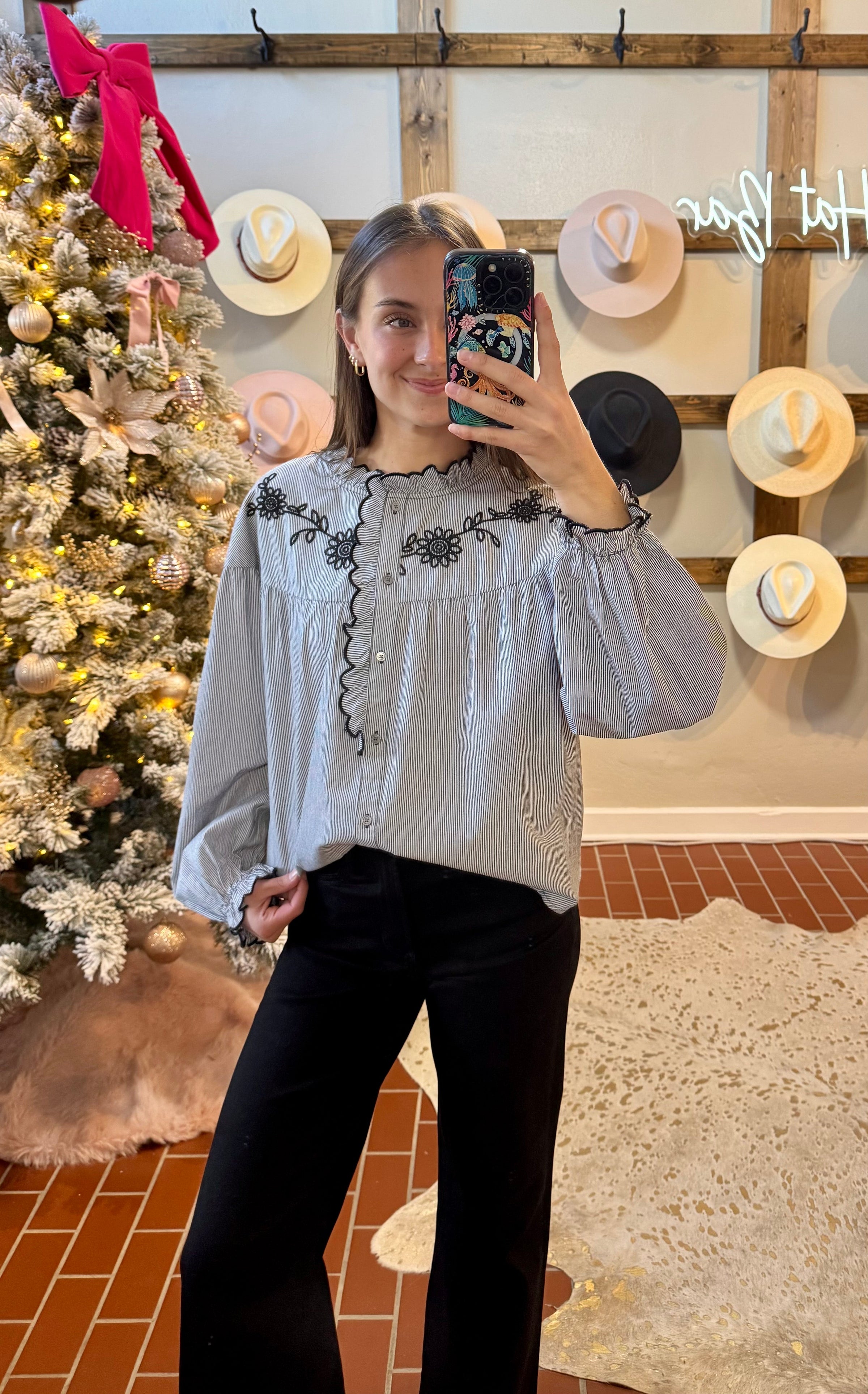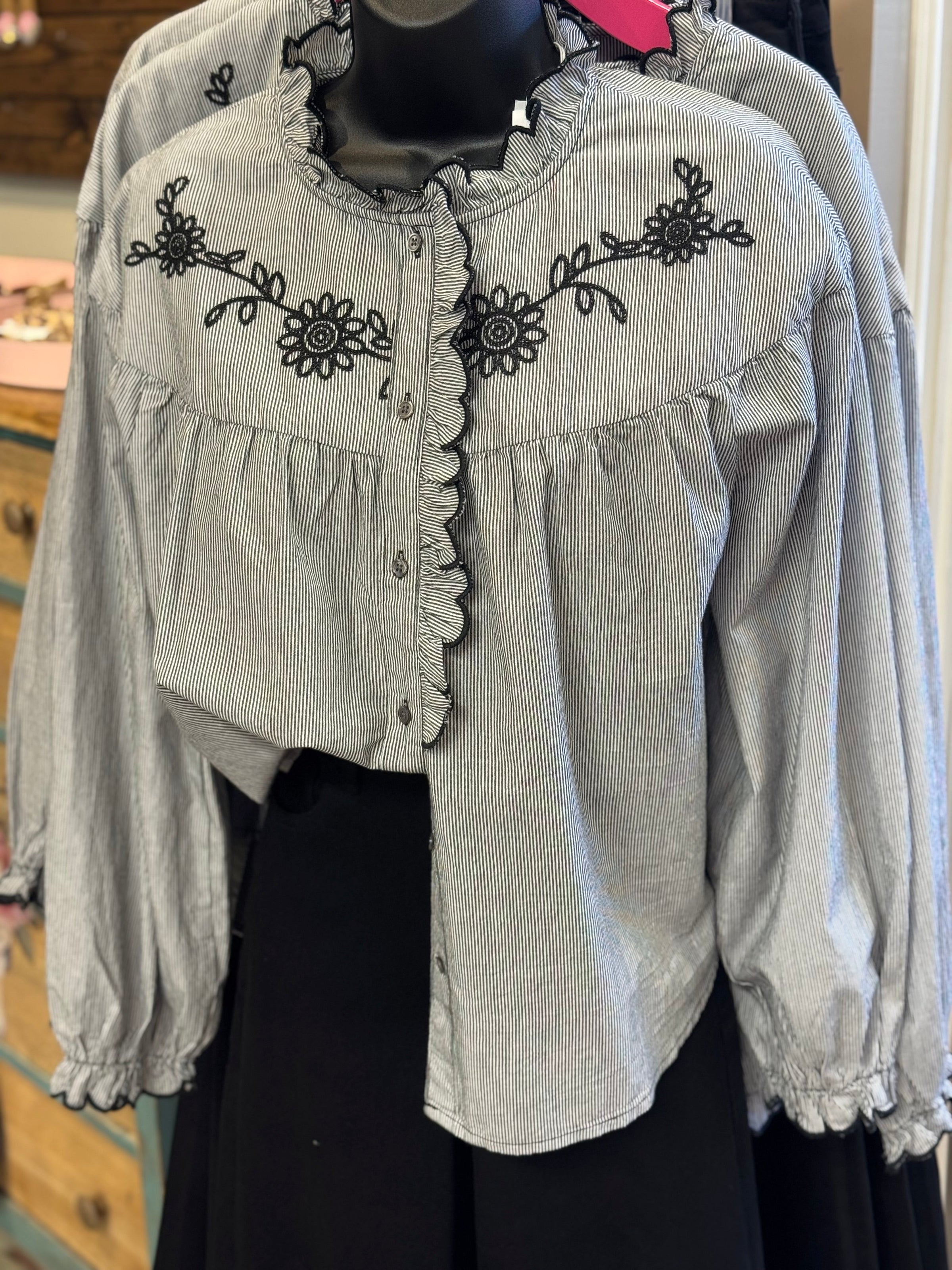 Embrace timeless elegance with the long-sleeve Hilary shirt, featuring intricate embroidery with a touch of sophistication.