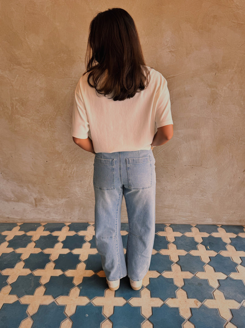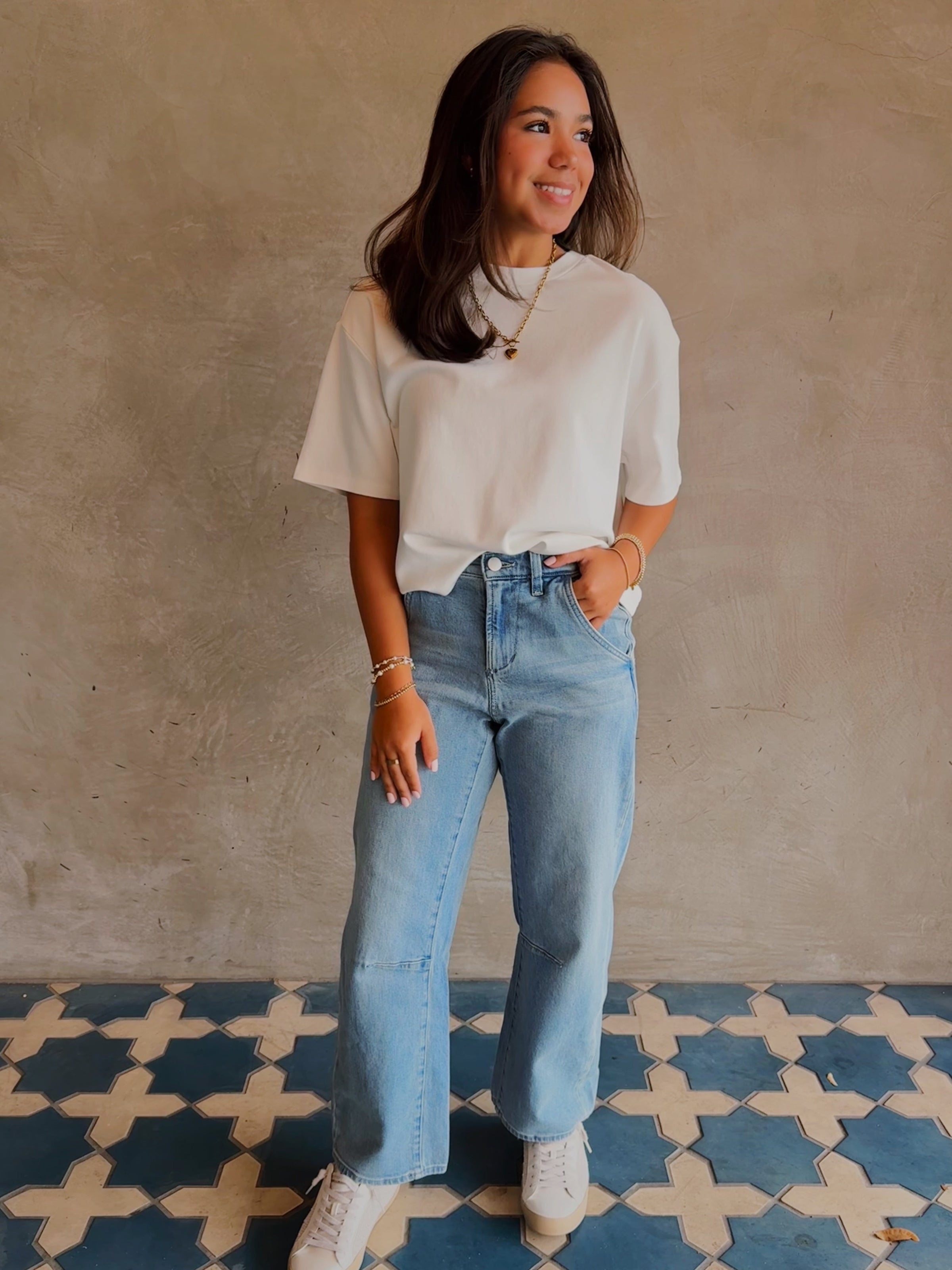 Get ready to turn heads in our Dear John Lasso Jeans! These playful high rise cropped jeans in a medium wash offer a loose fit with a defined waist, thanks to back and leg darts. Versatile for day or night, with front slant and utility back pockets. Grab your Lasso for a relaxed and stylish look