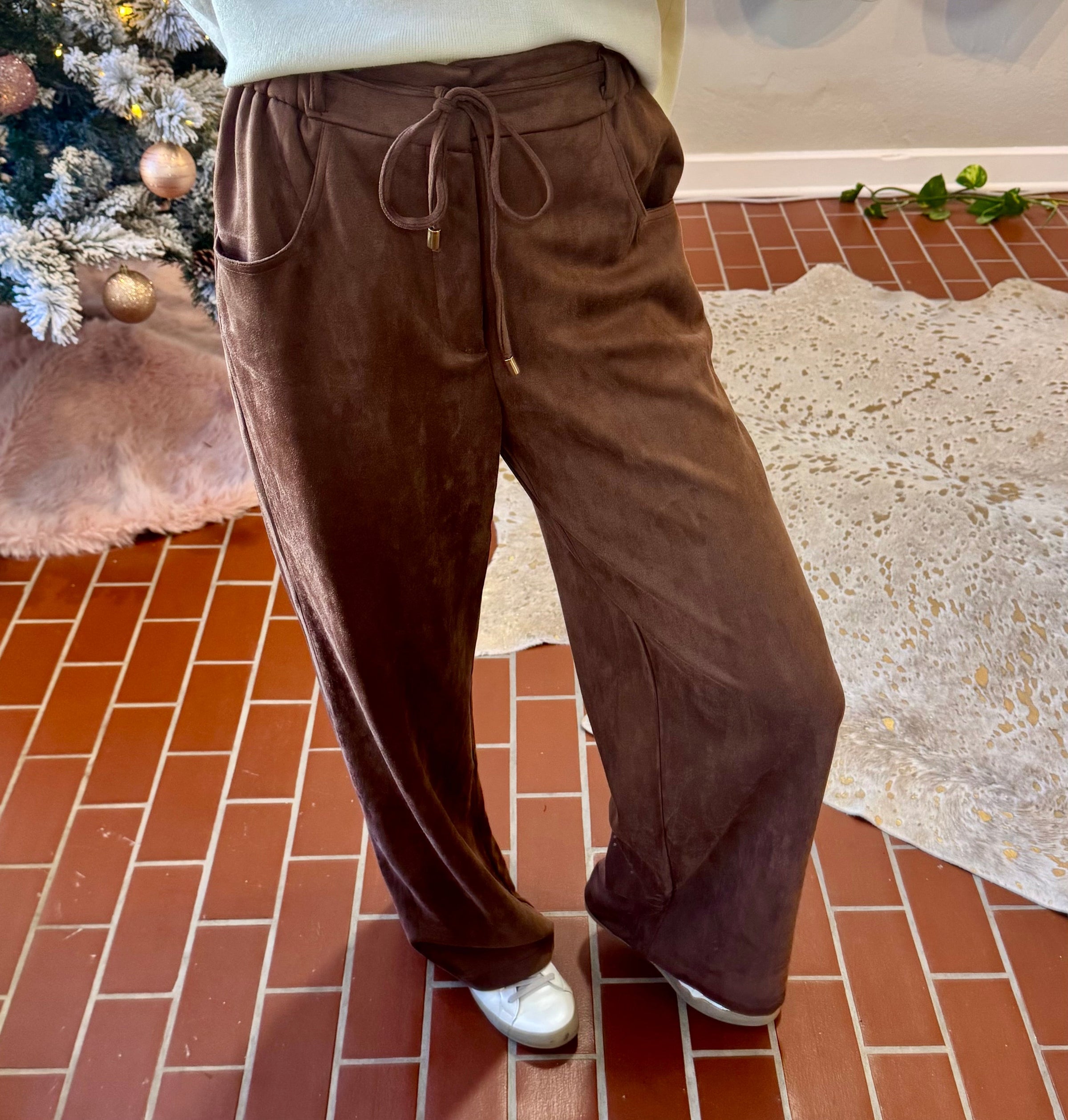 Elevate your holiday wardrobe with these Fall Suede Pants—the ultimate choice for Thanksgiving gatherings. Designed with a flattering wide-leg silhouette that moves beautifully, they combine style with unmatched comfort. The elastic waistband paired with zipper and clasp closure ensures a secure fit, while the coordinating tie belt adds a polished finishing touch. Perfect for transitioning from dinner table to dessert, these pants deliver the sophisticated ease you need for stress-free celebrations.