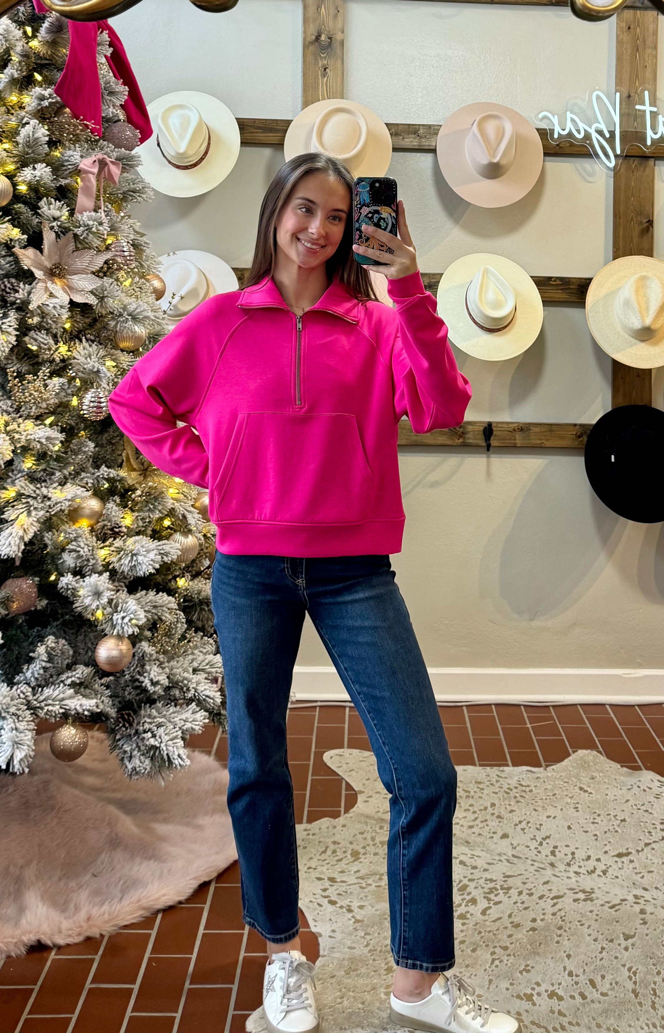 Elevate your casual wardrobe with this ultra-soft scuba half-zip pullover, designed for all-day comfort and effortless style. The stretchy fabric blend moves with you, while the convenient kangaroo pocket keeps essentials within reach. With a relaxed fit and modern silhouette, this versatile piece layers beautifully or stands alone. Perfect for weekend outings, cozy nights in, or transitional weather. The durable polyester-rayon-spandex blend ensures lasting softness and shape retention through countless wears.