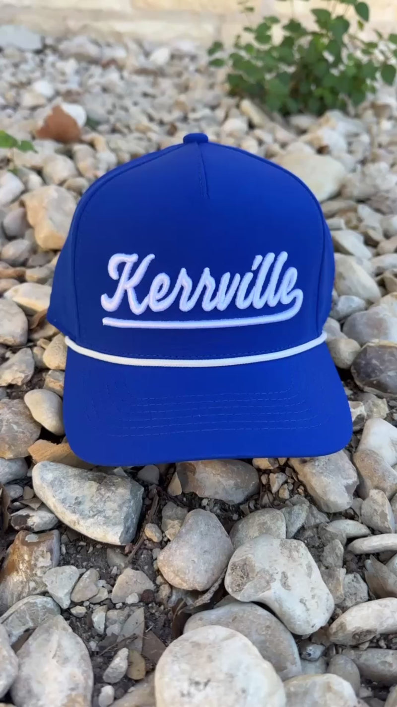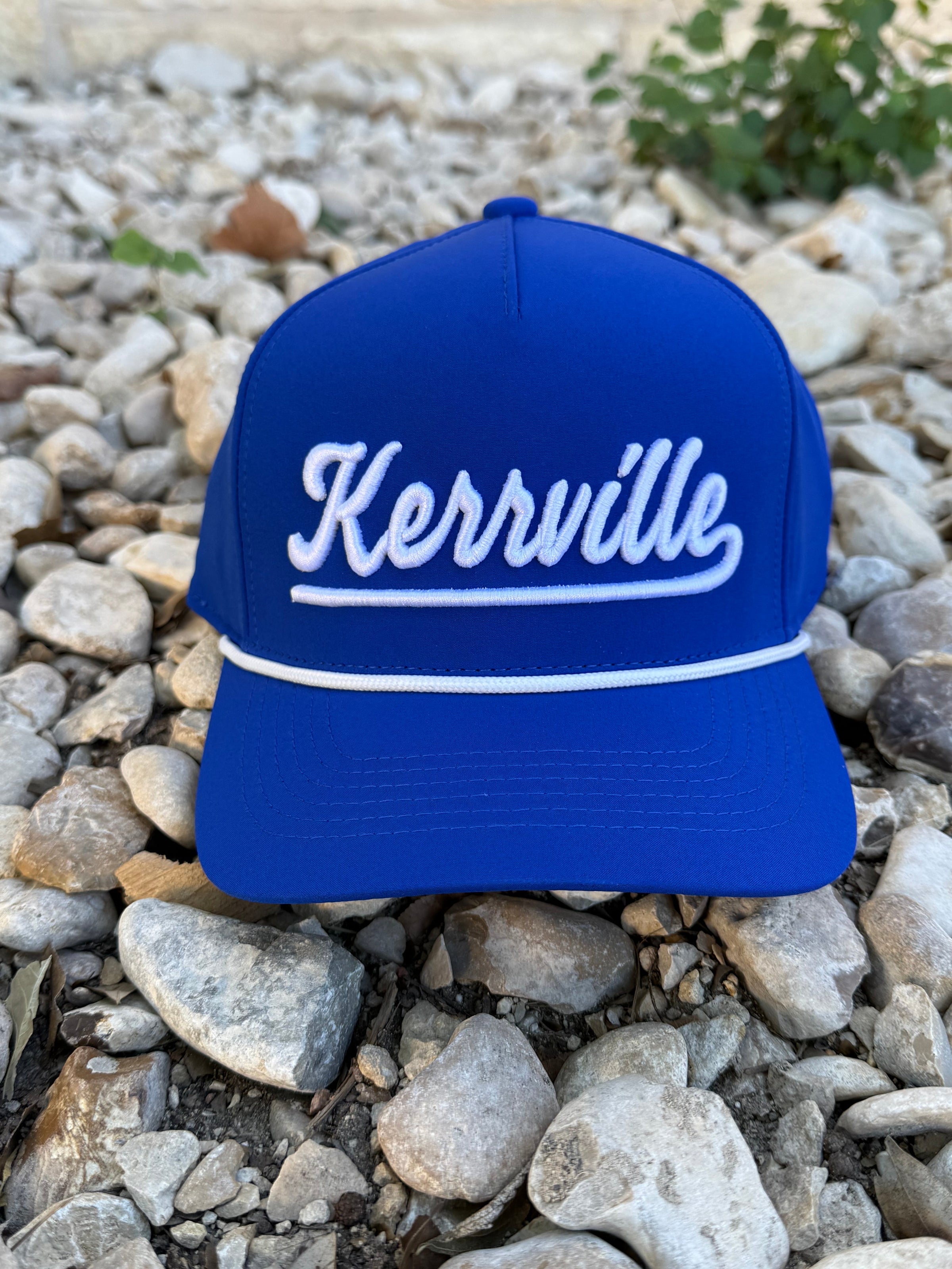 The Kerrville Royal Blue Hat is a great quality hat perfect for outdoor activities. The snap back design ensures a secure fit, while the royal blue color with white puff print and rope detail adds a touch of style. Stay comfortable and stylish with this hat.