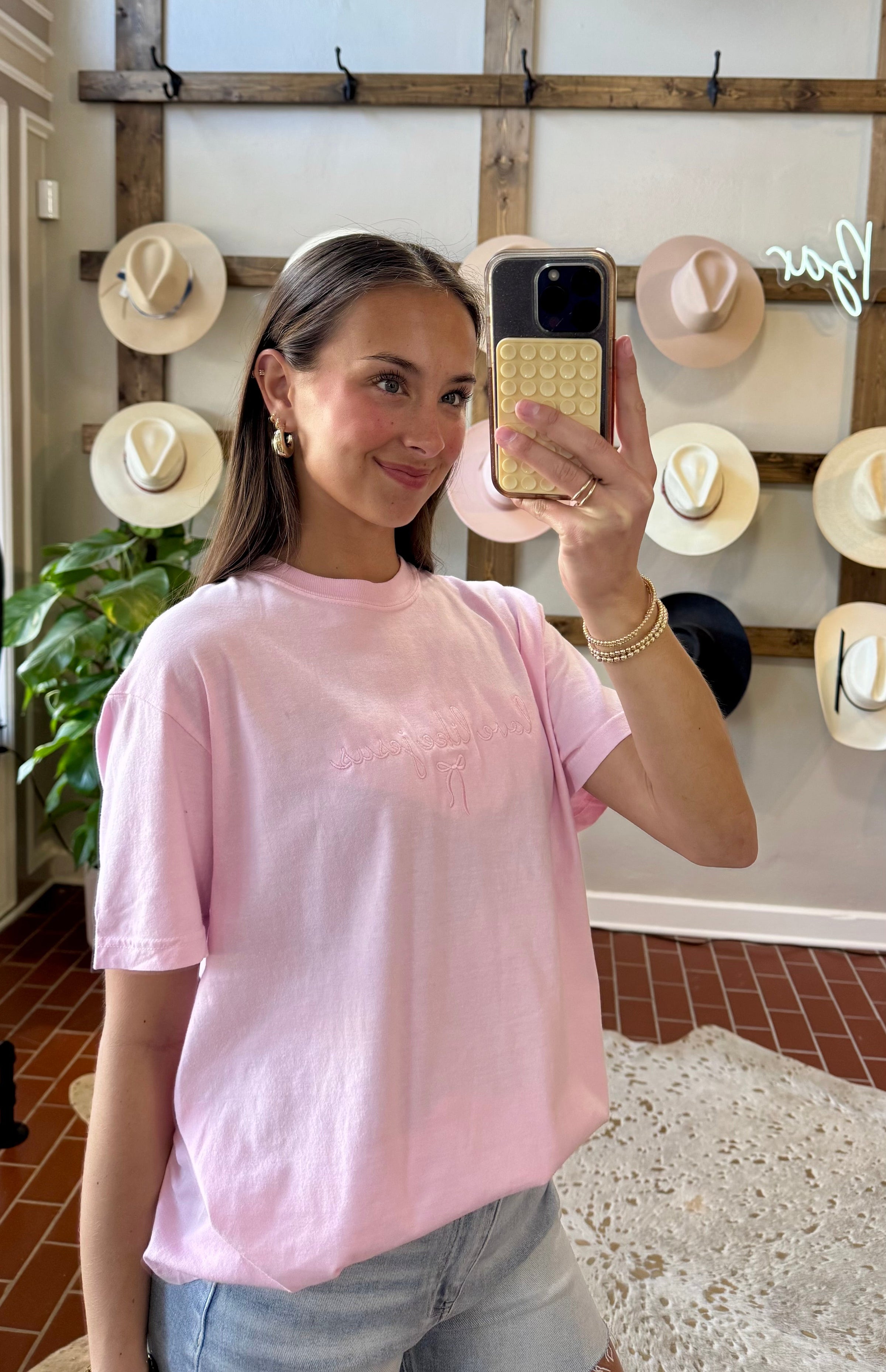 Spread love and inspiration with this precious baby pink tee featuring delicate embroidered wording that reads "Love Like Jesus." Crafted from incredibly soft fabric, this tee combines comfort with meaningful style. Perfect for anyone seeking to express their faith through fashion, it's a versatile piece that works beautifully for casual wear or as a thoughtful gift. The gentle pink hue and intricate embroidery create an understated yet powerful statement that resonates with your values.