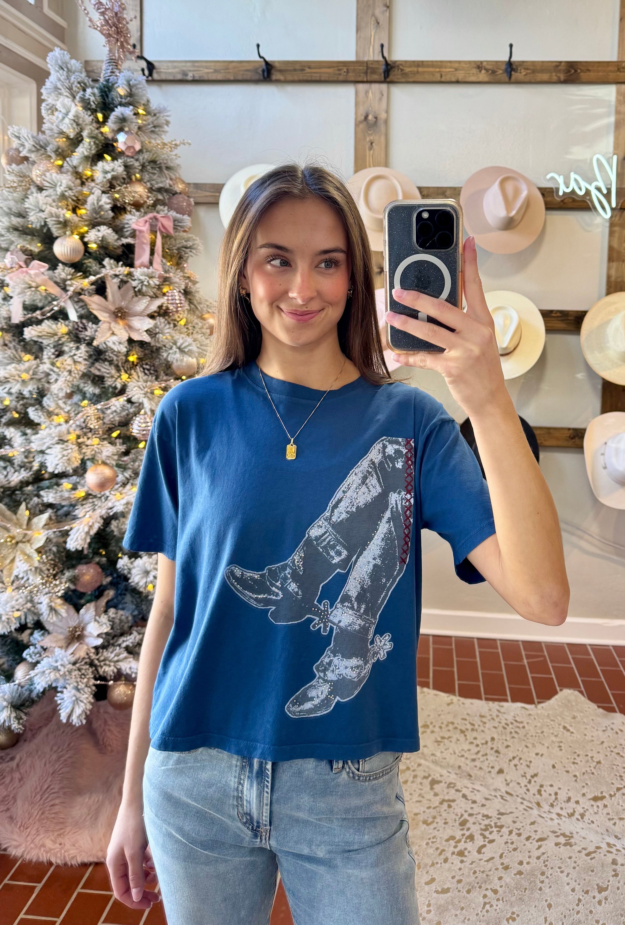 The Spur Wide Boy Tee is a must-have for your concert-ready wardrobe. Featuring delicate embroidered details and sparkling rhinestone embellishments, this vintage crop tee adds a touch of glam to your casual style. Pair it effortlessly with a denim skirt and boots for an unforgettable look. True to size for a comfortable fit that looks as great as it feels.